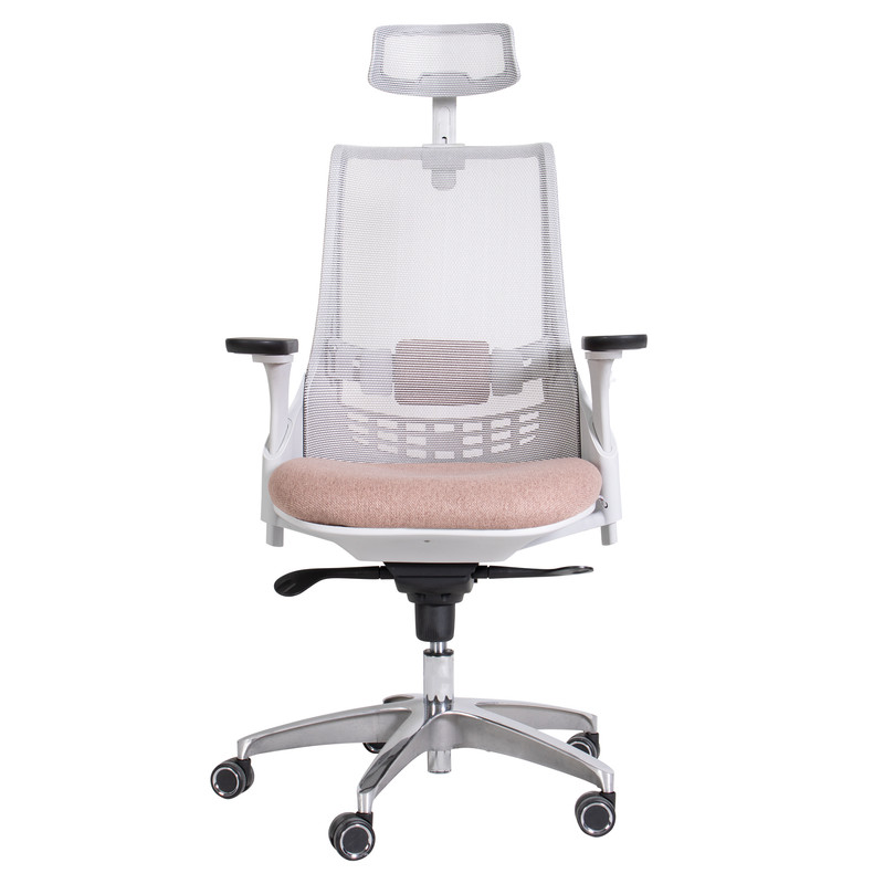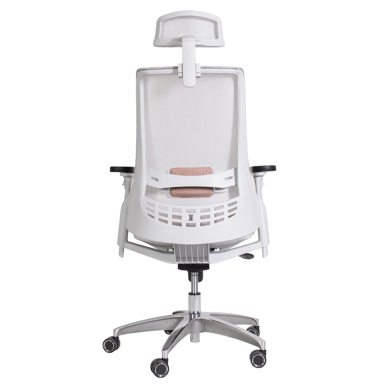 پشت سری این صندلی اداری روکشی از جنس مش دارد و به سمت بالا و پایین حرکت میکند. این قابلیت به افراد این امکان را میدهد تا پشت سری صندلی را براساس قد خود تنظیم کرده و فشار و خستگی را از روی گردن و شانهها کم کنند.