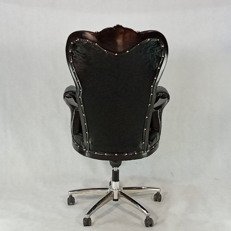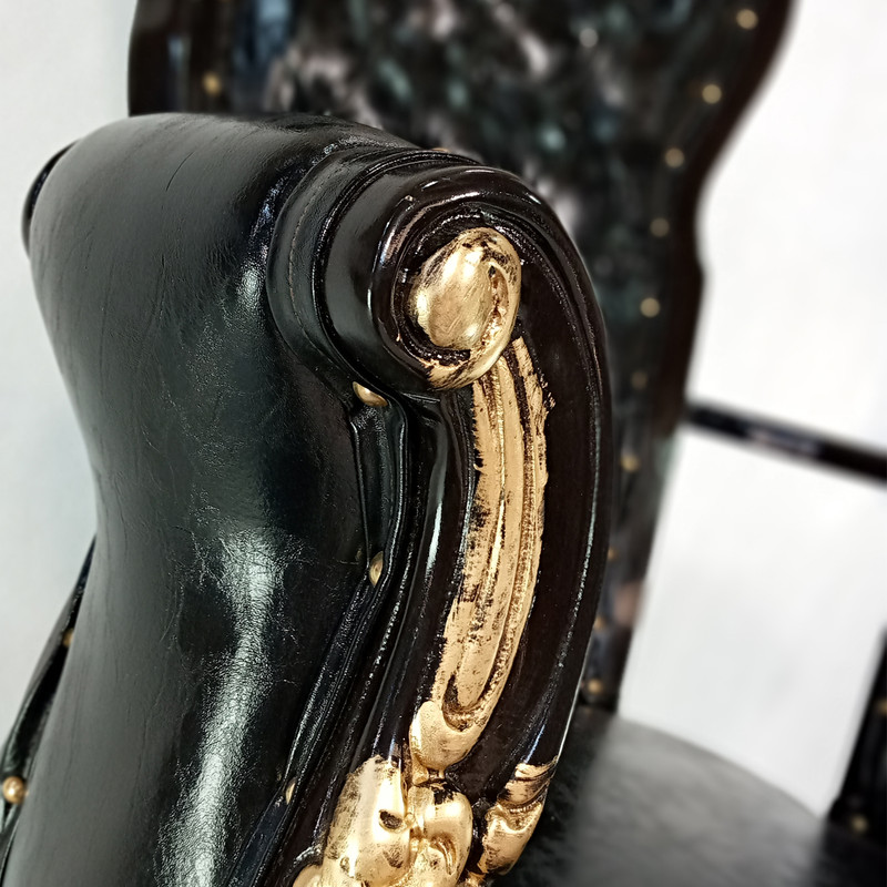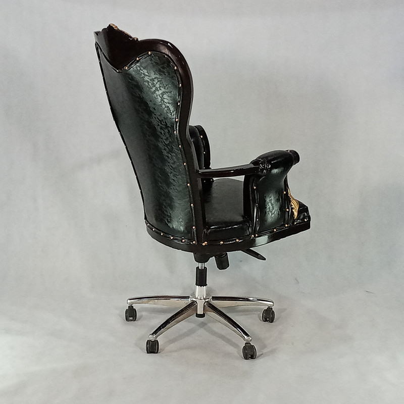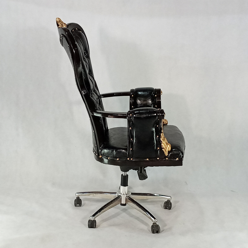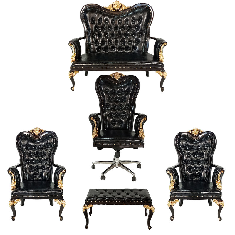 این محصول علاوه بر رنگ چوب دارای سر گلهای منبطی با روکش طلایی است که زیبایی کار را دوچندان کرده است.روکش این مبل از چرم کریستال بوده که جنس آن pu با مقاومت بالا در برابر ضربه و ناخن کشیدن است. مکانیزم این محصول دارای تنظیم زاویه بوده و در هر زاویه دلخواه مشتری قابلیت قفل شدن دارد تا مصرف کننده بتواند در استایل دلخواه خود آن را تنظیم کند.جک این محصول تنظیم شونده است و می توان تا ارتفاع 10 سانت آن را بالا و یا پایین کرد.