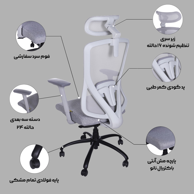 صندلی مدیریتی کادی نو مدل پرستیژ الترا( اختراع و تولید توسط گروه کادینو به شماره ثبت 491430) ترکیب لوکس، راحتی و مهندسی ارگونومیک بهترین انتخاب برای هر شخصی است که ساعتهای طولانی در دفتر کار میکند این صندلی ترکیبی مناسب از حداکثر پشتیبانی و راحتی را ارائه میدهند. همچنین این صندلی اداری بر پایه توجه به حفظ سلامت پشت و گردن کاربر ساخته شده است. از این رو موجب کاهش خستگی و فشار به اعضای بدن در حین کار طولانی میشود. مهمترین مزیت صندلی اداری ارگونومیک قابلیت تنظیم آنها است. در این مدل صندلیها میتوانید دستهها، پشتی ، زیر سری و ارتفاع خود را تنظیم کنید. راحتی صندلیهای اداری ارگونومیک به دلیل قابلیت تنظیم ثابت شده است و همچنین مانع از محدود شدن جریان خون در بدن است. صندلی پرستیژ الترا بر اساس اصول ارگونومی طراحی و تولید شده ، و امکان تنظیم گودی کمر 8 حالته ، زیر سری به 16 حالت مختلف و دسته ها به 24 حالت مختلف دارد ( دسته ها سه بعدی می باشند و پد ها به جانبین حرکت میکند) . فریم پشتی و نشیمن از پلیآمید تقویت شده تولید شده که سوار بر پایه پنج پر ساخته شده از ورق فولادی با استحکام بالا با پوشش الکترواستاتیک است. در قسمت پشتی این محصول از مش آنتی باکتریال نانو رویال استفاده شده که در کنار ظاهری زیبا باعث جلوگیری از تعریق در هنگام استفاده از صندلی میشود. جنس روکش پشتی این محصول از پلاستیک و جنس کفی آن از پارچه ساخته شده است این محصول نسخه نهایی مدل پرستیژ می باشد.