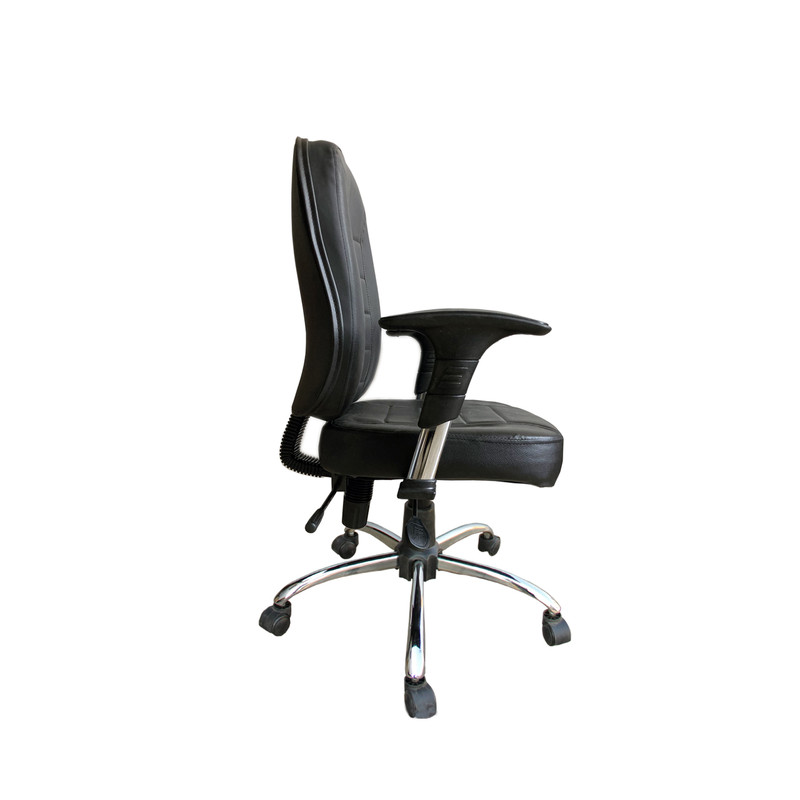 صندلی اداری مدل 150 دارای طراحی زیبا و ساده و متناسب با اصول ارگونومی و مناسب برای استفاده در هر محیط کاری، دارای کلاف ساخته شده از جنس چوب-فلز پیچ و مهره ای با استحکام بالا و با دانسیته کنترل شده جهت افزایش راحتی کاربر، چرم استفاده شده در محصول دارای مقاومت بالا در برابر پوسیدگی و از نوع نرم میباشد. استفاده از چرخ ژله ای به منظور سهولت حرکت و جلوگیری از صدای اضافی، دارای پایه پنج پر فولادی است که موجب راحتی در حرکت می شود که به جهت جلوگیری از پوسیدگی روکشی …