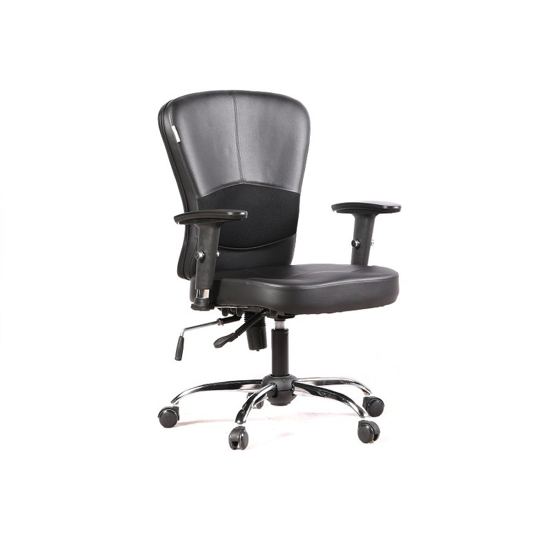صندلی منشی ، بسیار شیک و زیبا ، طراحی مدرن ، پایه صندلی پنج پر لوله ای فولادی آبکاری شده، چرخ های ژله ای بدون صدا ، جک گازی کلاس چهار ، مکانیزم دو دسته منشی با امکان قفل دو حالته ، استفاده از فوم سرد قالبی در کفی صندلی جهت عدم تغییر شکل صندلی در بلند مدت ، همراه با روکش دوخته شده با چرم پی یو که اجازه پوست پوست شدن روکش را نمیدهد به همراه پارچه ، دسته های تنظیمی فولادی با رویه ی پد نرم انتگرال .صندلی ارگونومیک و بسیار راحت مناسب برای ساعات کار طولانی و سازگار با سلامت ستون فقرات بدن از جمله شکل صحیح ایستایی پشت و گودی کمر