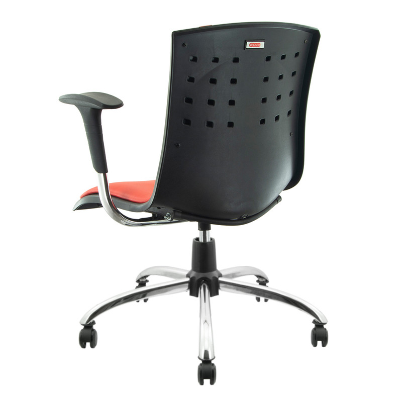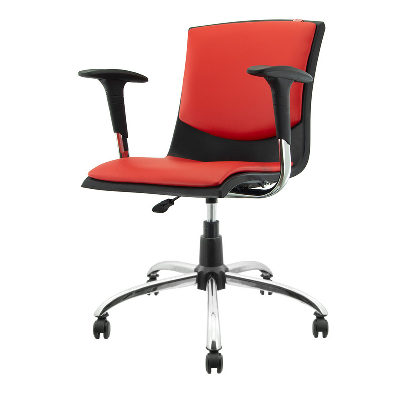 صندلی اداری هوگر مدل KH230-C با جک کورس 12 سانت و پنج پر فلزی با آبکاری کروم . کلاف پلاستیکی به رنگ مشکی است و فقط رنگ قسمت های چرمی قابل انتخاب میباشد.
