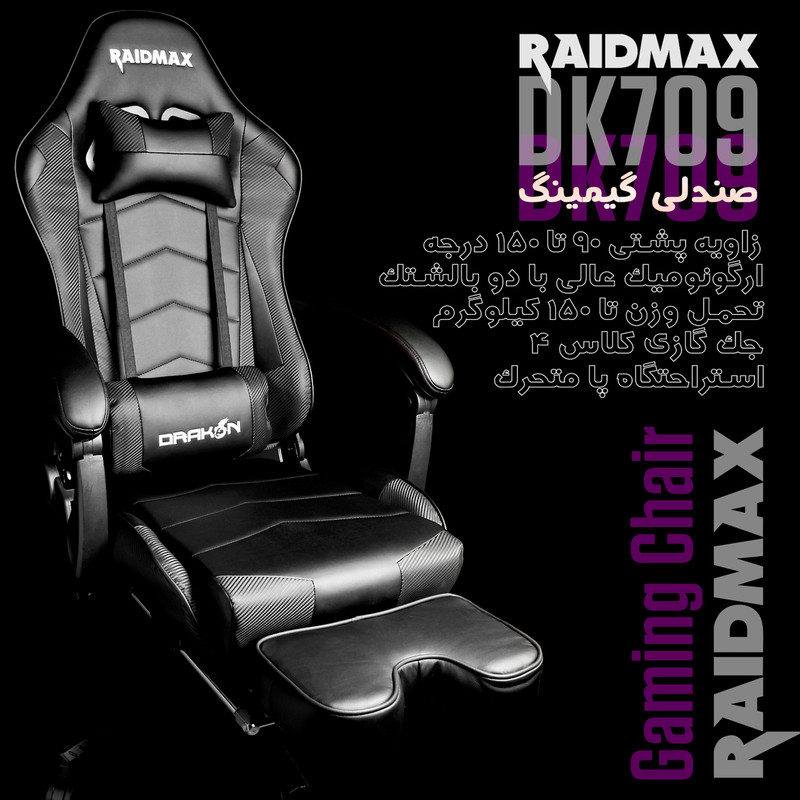 شرکت ریدمکس پس از استقبال قابل توجه کاربران نسبت به صندلی های گیمینگ خود، تنوع محصولات را افزایش داده و با حفظ نسبت کارایی به قیمت، مدل های جدیدی را به بازار عرضه کرده است. صندلی گیمینگ RAIDMAX DK 709 یکی از جدیدترین تولیدات این شرکت خوشنام در عرضه لوازم جانبی کامپیوتر شخصی به شمار می رود که دارای ویژگی های متفاوتی نسبت به سایر محصولات است. ساختار طراحی DK 709 در همان نگاه اول نیز تفاوت های زیادی دارد و ظرافت خاصی مشاهده می شود. بخش پشتی صندلی مخصوص بازی ریدمکس تا حدودی ضخیم تر بوده و حفره بزرگ در قسمت پشت گردن، این بخش را به خوبی تفکیک کرده است. بر خلاف سایر محصولات ریدمکس، اثری از بالشتک پشت گردن مشاهده نمی شود و این ناحیه از بدن توسط بدنه ضخیم تر تحت پوشش قرار می گیرد. در حقیقت کمپانی سازنده، بالشتک پشت گردن را با بخش پشتی بدنه به صورت یکپارچه طراحی کرده است. قسمت مرکزی پشتی صندلی به صورت هم رنگ با بدنه در نظر گرفته شده، اما دو خط موازی به رنگ های روشن مانند زغالی، آبی روشن، عاجی و صورتی سبب تفکیک آنها شده است.