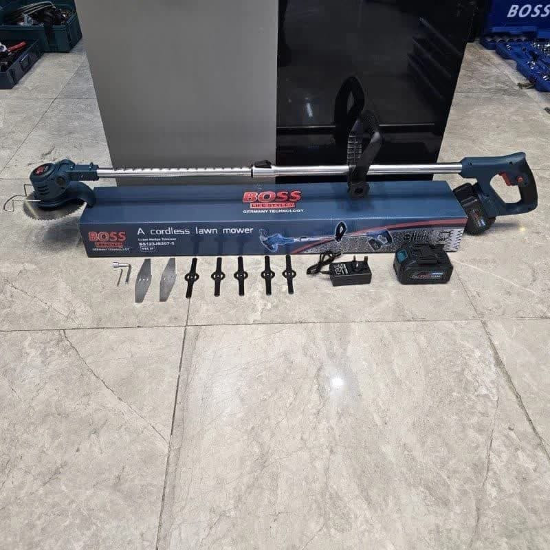 علف زن شارژی باس یکی از محصولات کاربردی است که توسط شرکت معتبر BOSS تولید شده است. که راهکاری برای کوتاه کردن و چیدن علف‌ها، برای محوطه‌ی منزل و فضاهای سبز است. البته چیدن علف‌ها در فصل‌های بهار و تابستان به دلیل رشد سریع‌تر این گیاه، بیشتر انجام می‌شود. این کار، ضمن آراسته کردن محیط، باعث رشد بهتر و منظم‌تر گیاه می‌شود. برای چیدن علف‌ها در محیط‌های وسیع، از علف زنهای شارژی که نیاز به برق نمی باشد و براحتی در هر محیطی قابل بکارگیری است استفاده می شود .علف زن شارژی باس که بصورت اصلی توسط ایران باس توزیع میگردد یکی از این محصولات فوق العاده کاربردی ومنحصر به فردی می باشد که میتوان برای حاشیه زنی استفاده کرد و هم برای سطوح مسطح قابل استفاده است که دارای مشخصات ذیل می باشد: دارای دو باتری قدرتمند و قدرت مناسب و 2400 دور بر دقیقه و دسته تلسکوپی و امکان تغییر زاویه علف زنی و امکان تغییر طول دسته (115-80 سانتی متر) و بدنه فلزی و مستحکم و بست فرمان آنتی شوک و کاملا بی صدا (مناسب محیط های مسکونی و اداری) و قابلیت نصب انواع تیغه به همراه؛ 5 عدد تیغه پلاستیکی، دو عدد تیغه فلزی، یک عدد تیغ اره 80 دندانه می باشد که مناسب باغچه های کوچک است . لطفا همیشه به اصل بودن کالا توجه فرمایید .