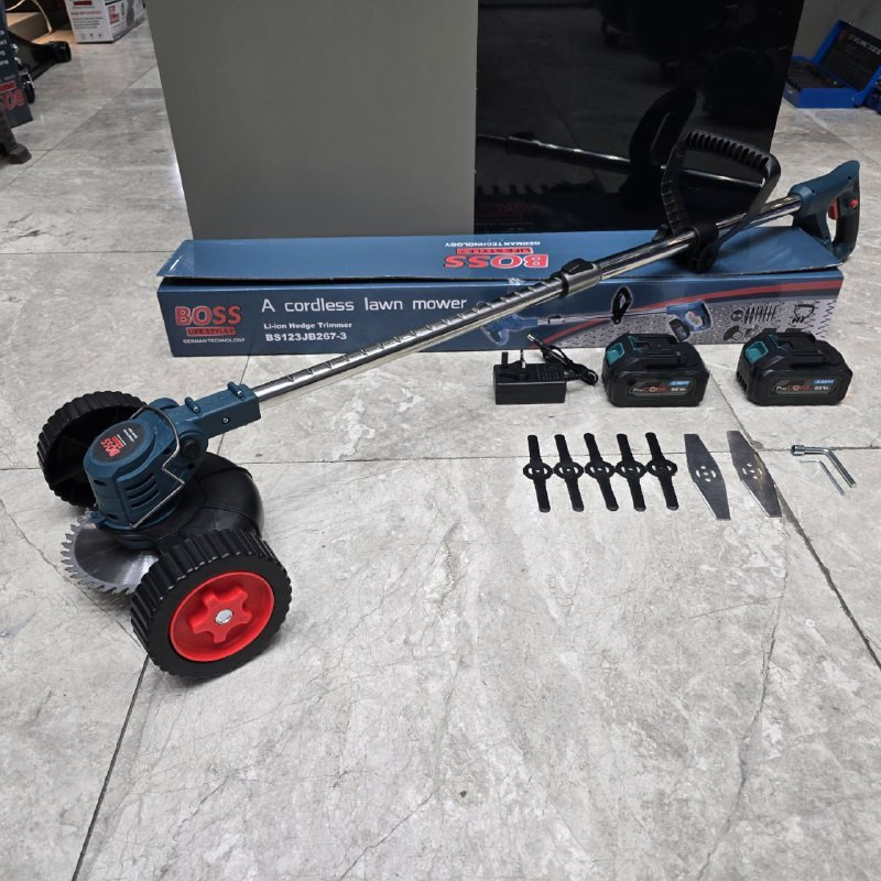 علف زن شارژی چرخ دار باس یکی از محصولات کاربردی است که توسط شرکت معتبر BOSS تولید شده است. که راهکاری برای کوتاه کردن و چیدن علف‌ها، برای محوطه‌ی منزل و فضاهای سبز است. البته چیدن علف‌ها در فصل‌های بهار و تابستان به دلیل رشد سریع‌تر این گیاه، بیشتر انجام می‌شود. این کار، ضمن آراسته کردن محیط، باعث رشد بهتر و منظم‌تر گیاه می‌شود. برای چیدن علف‌ها در محیط‌های وسیع، از علف زنهای شارژی که نیاز به برق نمی باشد و براحتی در هر محیطی قابل بکارگیری است استفاده می شود .علف زن شارژی چرخ دار باس کهبصورت اورجینال توسط ایران باس توزیع میگردد یکی از این محصولات فوق العاده کاربردی ومنحصر به فردی می باشد که هم میتوان بدون چرخ برای حاشیه زنی استفاده کرد و هم با چرخ برای سطوح مسطح قابل استفاده است که دارای مشخصات ذیل می باشد: دارای دو باتری ۸۸ ولت و قدرت مناسب و ۲۴۰۰ دور بر دقیقه و دسته تلسکوپی و امکان تغییر زاویه علف زنی و امکان تغییر طول دسته (۱۱۵-۸۰ سانتی متر) و بدنه فلزی و مستحکم و بست فرمان آنتی شوک و کاملا بی صدا (مناسب محیط های مسکونی و اداری) و قابلیت نصب انواع تیغه به همراه؛ ۵ عدد تیغه پلاستیکی، دو عدد تیغه فلزی، یک عدد تیغ اره ۸۰ دندانه می باشد که مناسب باغچه های کوچک است