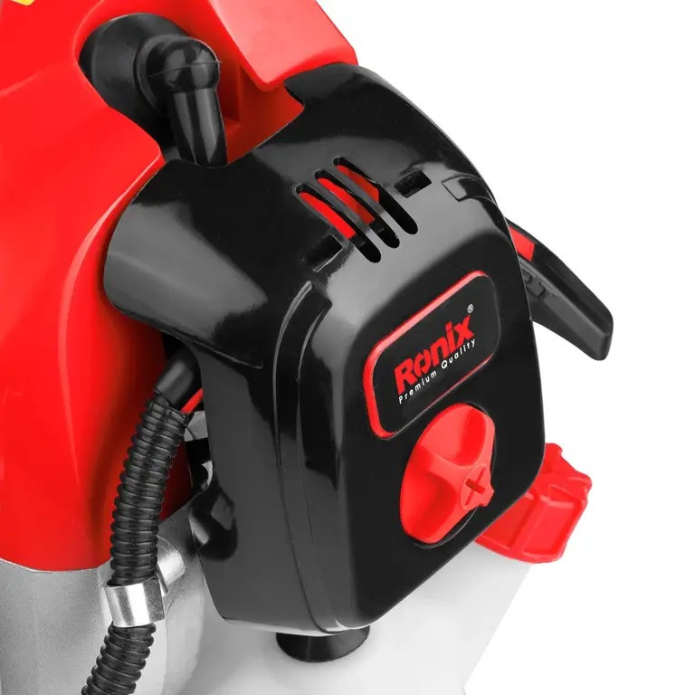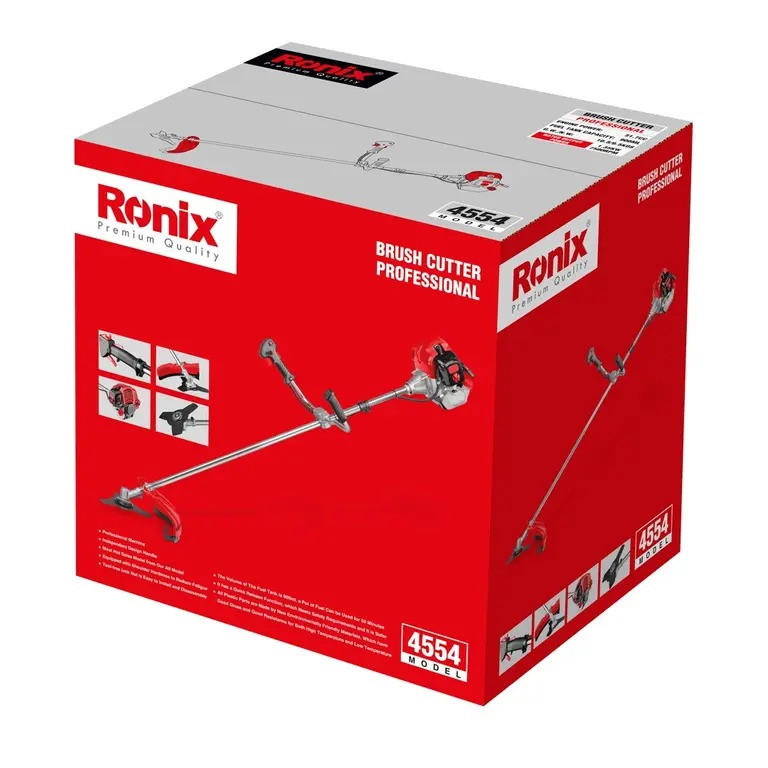 از علف زن بنزینی، چمن زن موتوری یا شمشاد زن برای هرسکردن پرچینها، کوتاهکردن چمن کنار حیاط یا پیادهروها و آراستن چمنهای بلند استفاده میشود.دسته بلند حاشیهزن موتوری یا بنزینی 4554 رونیکس، در یک طرف این ابزار قرار دارد و در طرف دیگر آن تیغه برشی چرخان تعبیه شده است. تیغهی برش فلزی سهپرهی این محصول و تیغهی نخ نایلونی، مخصوص کارهای سنگین باغبانی طراحی شده و با سرعت بالایی چمنها را کوتاه میکنند.این دستگاه دارای موتور قدرتمند با مدل 1E44F-5؛ تکسیلندر دوزمانه به ظرفیت 51.7 سیسی؛ توان خروجی 1350 وات؛ سرعت در حالت آزاد 7500 دور بر دقیقه؛ تولید گشتاور بالا و کارایی فوقالعاده در عملیات سنگین؛ دارای سیستم جرقهزنی حرفهای CDI به منظور پیشروی روان و حاشیهزنی دقیق و دارای مخزن 900 میلیلیتری؛ نوع سوخت مصرفی دستگاه بنزین بوده و نسبت ترکیب سوخت روغن به بنزین برابر با 1 به 25 است.