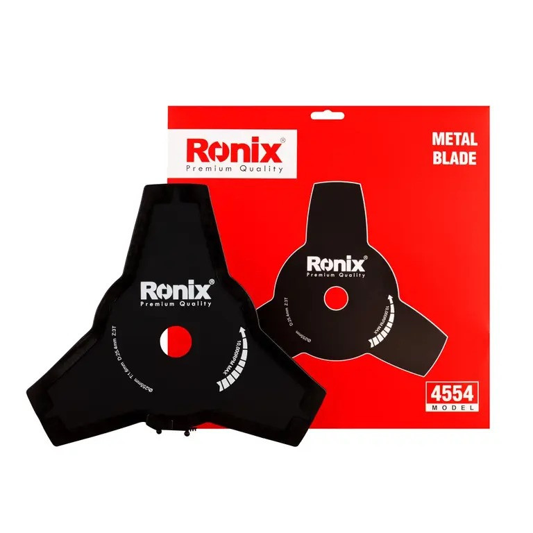 دارای دو نوع تیغه فلزی سه پره و تیغه نخ نایلونی برای انجام کارهای سنگین؛ تیغهی نایلونی با لبهگیری دقیق و تیغه فلزی با قدرت لبهگیری بالا کار میکنند که منجر به کنترل آسان دستگاه و افزایش میزان بازدهی میشود. دستگاه، همراه با محافظ تیغه با طراحی رونیکس ارائه میشود.