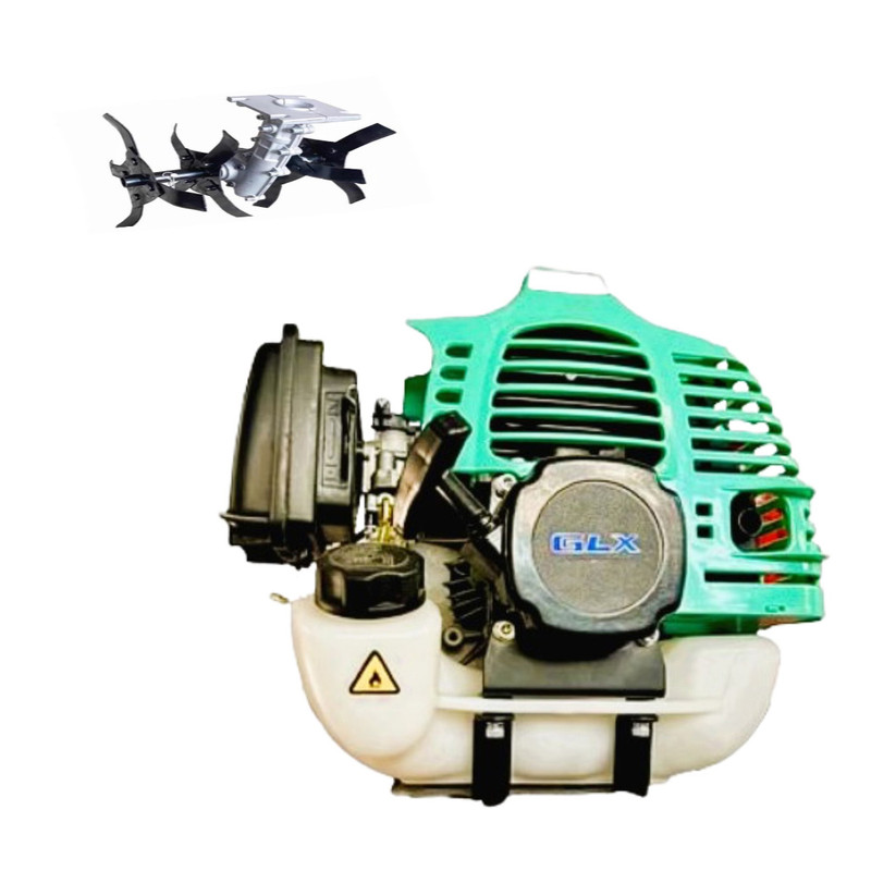یکی از معروفترین، باکیفیت ترین و شناخته شده ترین برندهای تولیدکننده علفتراش، یونجه بردوشی GLX می باشد. علفزن دو زمانه بوده که به صورت مخلوط روغن و بنزین به نسبت هر یک لیتر بنزین 50 سی سی روغن اضافه شود. به عنوان یکی از مناسب ترین ابزارها جهت کوتاه نمودن علف های هرز در پروژه های با حجم متوسط و بالا شناخته می گردد. دستگاه علف زن یکی از دستگاه های بسیار پرکاربرد باغبانی و کشاورزی است. از این دستگاه برای تراشیدن علف های هرز استفاده می کنند. و به همراه الحاقی اره و روتیواتور میباشد