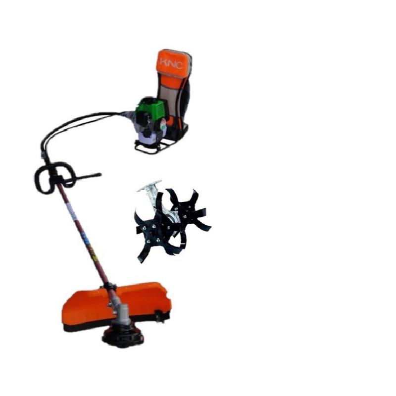 علف زن KNCیکی از بهترین دستگاه های علف زن موجود در بازار است که دارای کیفیت عالی و موتور قدرتمند است.علف زن KNCمدلKBC-40EU ساخت کره جنوبی می باشد و از نظر کیفیت یکی از با کیفیت ترین علف زن های بازار است. در این مدل علف از هندل های دو فنره استفاده شده که باعث استارت اسان دستگاه میشود و همچنین در این دستگاه از کاربراتور های اتوماتیک استفاده شده که باعث کاهش مصرف سوخت میشود . برای روشن کردن اسان دستگاه پس از منتاژ چند بار قسنت پلاستیکی شفاف زیر کربراتور (پرایمر)را فشار داده تا سوخت به کاربراتور برسد . در هنگام ترکیب کردن روغن و بنزین حتما نسبت را رعایت فرموده چون در صورت زیاد بودن روغن موتور رئوشن نمشود و در صورت کم بودن روغن دستگاه بد کار میکند اولین بار برای روشن کردن دستگاه مقداری کمتری روغن استفاده کنید و بعد از روشن شدن موتور سوخت باقی مانده در باک را تخلیه و سوختی جدید با نسبت های داده شده استفاده نمایید از حل شدن کامل روغن در بنزین مطمن شوید. در این مدل یک عدد الحاقی روتیواتور نیز قرار داده شده که میتوان از ان برای شخم زدن خاک استفاده کرد .