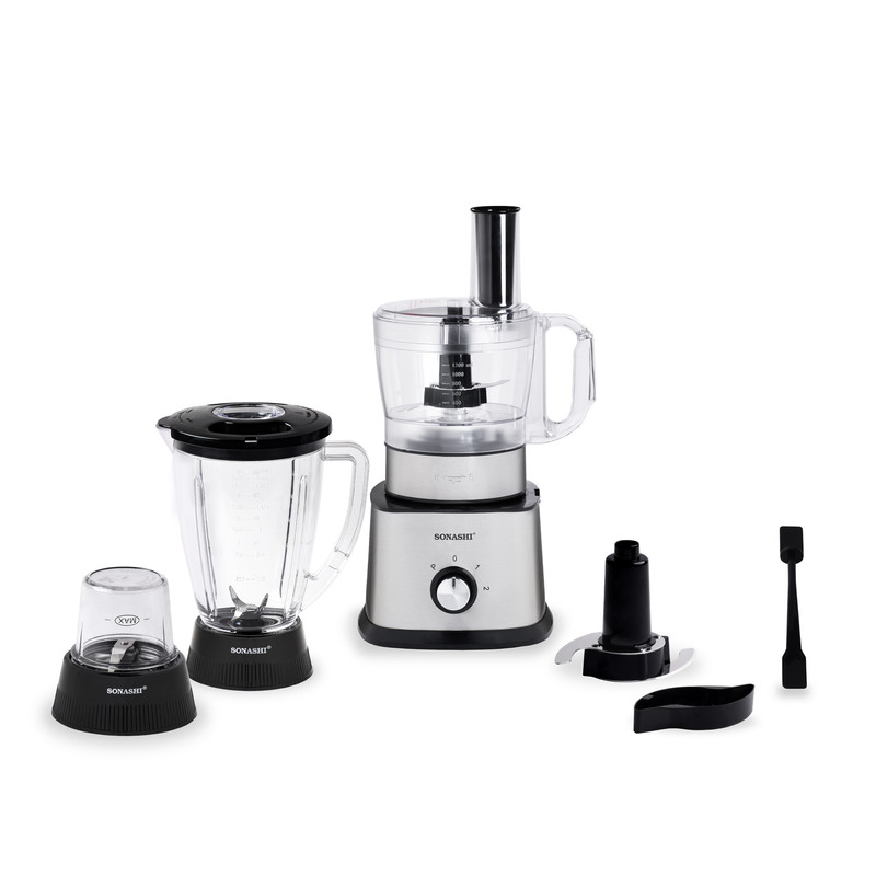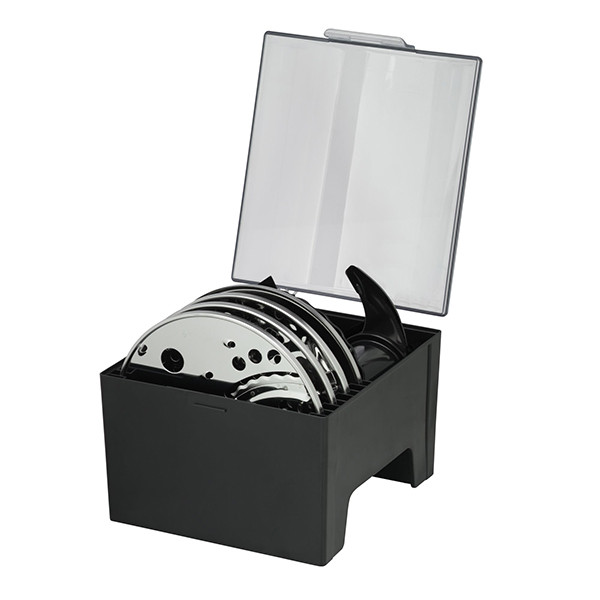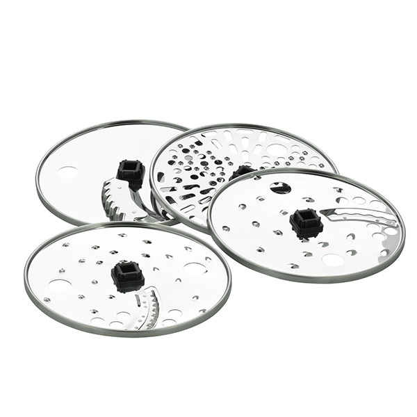 غذاساز شامل 7 تکه است که 1دستگاه، 4 دیسک از فولاد ضد زنگ برای نتایج دقیق و 2 سطح سرعت و عملکرد نبض می باشد. دارای جعبه ذخیره سازی عملی و ایمن برای برش و چاقو می باشد. همچنین دارای قفل ایمنی است. یعنی فقط زمانی راه اندازی می شود که ظرف به درستی در جای خود قرار گرفته و درب آن بسته باشد .