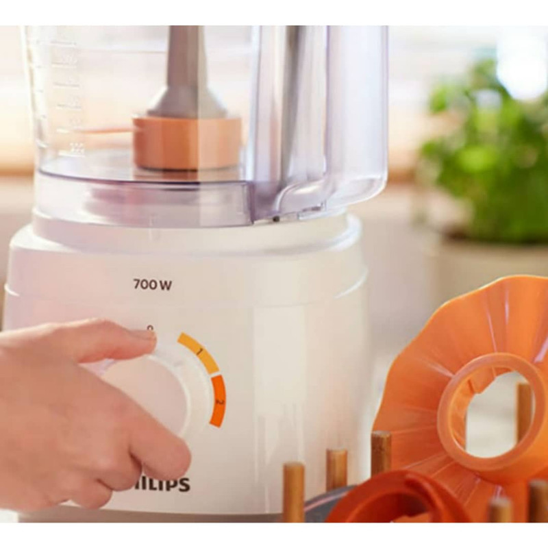 غذاساز HR7310 یک دستگاه تک کاره و با کیفیت از کمپانی هلندی فیلیپس است که از توان مصرفی 700 واتی بهره برده .این غذاساز برخلاف غذاسازهای چندکاره تنها برای تهیه و ساخت وعدههای غذایی همچون سوپ و کوکی بکار میروه و به یک پارچ 2.1 لیتری با دهانه بزرگ مجهز شده این دهانه بزرگ که بعنوان یک مزیت به حساب میاید براحتی امکان وارد کردن انواع مواد با حجم زیاد رادارد.و موجب افزایش سرعت در تهیه وعدههای غذایی میشود.تنظیم سرعت دستگاه به کمک ولوم چرخشی به روی بدنه در دو حالت مختلف کم سرعت و پر سرعت قابل تنظیم است که میتوان بسته به نوع سفتی و نرم بودن مواد داخلی غذاساز سرعت چرخش را تغیر کرد.همچنین عملکرد pulse نیز در این مدل وجود داره که با اتنخاب این حالت بصورت لحظه ای سرعت چرخش غذاساز به اوج خود خواهد رسید.بدنه پلاستیکی این غذاساز از نوعی پلاستیک بنام ABS ساخته شده که کاملا بهداشتی بودن ان را از همه نظر تایید میکند.جنس تیغه نیز از فولاد ضد زنگ و برندهای تولید شده و بخوبی انواع مواد رو میتونه میکس و قاطی کند.اگرچه غذاساز فیلیپس مدل HR7310 یک دستگاه تک کاره بحساب میاید، اما میتوان برای تهیه انواع غذاهای خوشمزه و لذیذازان استفاده کرد.