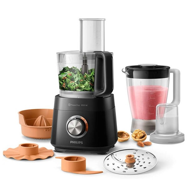 - سایر ویژگیها: موتور با توان 850 وات، ظرف خردکن با گنجایش 2.1 لیتر، پارچ مخلوط کن با گنجایش 1.5 لیتر، دارای ظرف آسیاب، رنده دیسکی تمام استیل دو طرفه، دارای پره همزن تخم مرغ و خامه و پره همزن خمیر زن، سری مخصوص آبمرکبات، دور موتور در دو سرعت قابل تنظیم بهمراه حالت پالس(لحظه ای)، قابلیت شستشوی اقلام در ماشین ظرفشویی، تمامی قطعات عاری از هرگونه مواد شیمیایی، طراحی و مهندسی محصول در کشور هلند مونتاژ نهایی در کشور چین