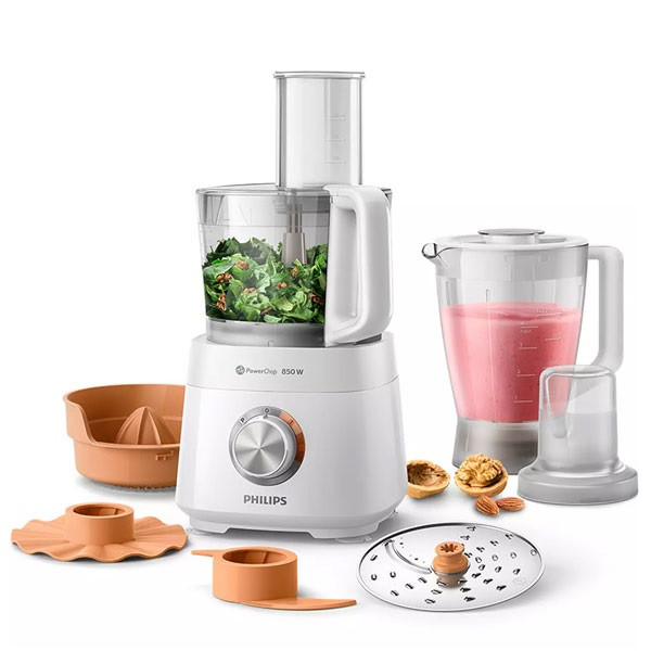 | سایر ویژگیها | موتور با توان 850 وات، ظرف خردکن با گنجایش 2.1 لیتر، پارچ مخلوط کن با گنجایش 1.5 لیتر، دارای ظرف آسیاب، رنده دیسکی تمام استیل دو طرفه، دارای پره همزن تخم مرغ و خامه و پره همزن خمیر زن، سری مخصوص آبمرکبات، دور موتور در دو سرعت قابل تنظیم بهمراه حالت پالس(لحظه ای)، قابلیت شستشوی اقلام در ماشین ظرفشویی، تمامی قطعات عاری از هرگونه مواد شیمیایی، طراحی و مهندسی محصول در کشور هلند مونتاژ نهایی در کشور چین |
