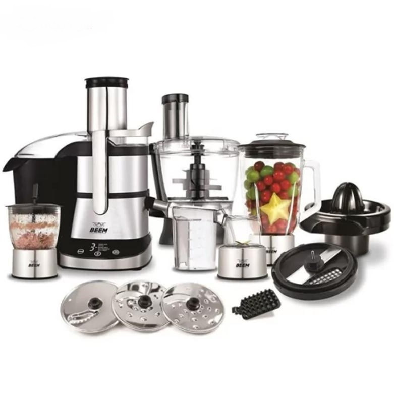 سایر ویژگیها:توان دستگاه معادل ۸۰۰ وات آبمیوه گیری چند کاره دارای ۵ مرحله تنظیمات سرعت و عملکرد لحظهای مجهز به نمایشگر لمسی دارای آبمیوه گیری، آب مرکبات گیری، مخلوط کن، خردکن، آسیاب، ۳ دیسک رنده، غذاساز جنس بدنه و تیغهها از استیل ضد زنگ جنس دیسکها استیل ضد زنگ گنجایش پارچ مخلوط کن ۱٫۵ میلی لیتر گنجایش غذاساز ۱٫۸ میلی لیتر گنجایش پارچ آبمیوه ۰٫۸ میلی لیتر دارای پایه های ضد لغزش مجهز به سیستم ضد چکه قابلیت شستشو اجزا در ماشین ظرفشویی غذاساز بیم مدل FP2011 توان ۸۰۰ وات دارد و به ابزارهای گوناگونی جهت آشپزی آسانتر مجهز شده است. جنس بدنه آن از استیل ضد زنگ و پلاستیک مرغوب ساخته شده و در برخی از اجزا مانند خردکن و غذاساز، ظرف شیشهای دارد. تیغههای این غذاساز بیم از استیل ضد زنگ هستند و مقاومت بالایی در برابر رطوبت دارند، در ضمن همیشه تند و تیز باقی میمانند