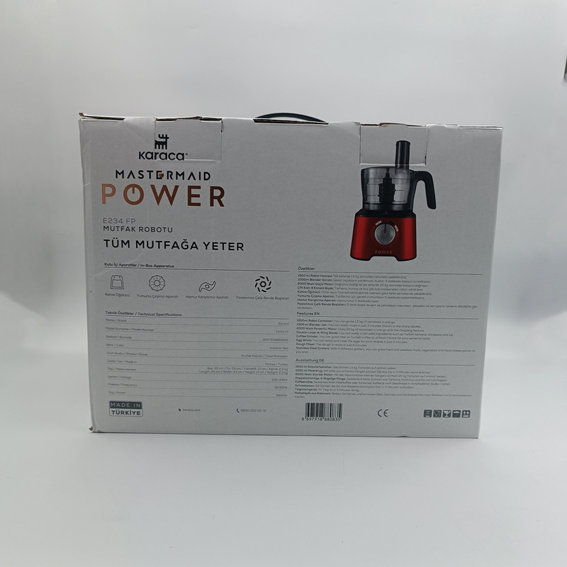 - سایر ویژگیها: توان 2000 وات جنس بدنه پلاستیک جنس تیغه استیل ضد زنگ حجم مخزن بزرگ 1.5 لیتر حجم مخزن کوچک 1 لیتر توضیحات محصول دارای عملکرد خرد کردن ، مخلوط کردن ، آسیاب کردن ، رنده کردن ، برش دادن ، ورز دادن و هم زدن ، خرد کردن یخ ، اسموتی ساز 5 عدد سری رنده مختلف از فولاد ضد زنگ ، برای میوه ها ، سبزیجات و پنیر مناسب برای آسیاب قهوه و ادویه تیغه های 4 عددی هلی کوپتری دو طبقه پایه ضد لغزش قطعات قابل جدا شدن قابلیت شستشو در ماشین ظرفشویی تنظیم سرعت دو مرحله ای مرحله 1 برای ورز دادن خمیر و هم زدن تخم مرغ مرحله 2 برای فرآیندهایی مانند خرد کردن سبزیجات ، چرخ کردن عملکرد توربو طراحی بدنه ارگونومیک دارای دو عدد ظرف جداگانه وزن 4 کیلوگرم