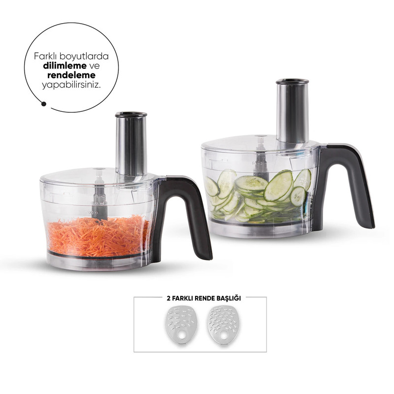 - سایر ویژگیها: ساخت ترکیه-بهترین و سریعترین عملکرد پردازش مواد غذایی را با قدرت موتور 2000 وات ارائه می دهد با مخزن بزرگ 1500 میلی لیتری آن، می توانید 1.5 کیلوگرم گوجه فرنگی را یکباره بچینید. تیغه های خردکن دوطبقه و 4 تیغه عملکرد عالی برش را ارائه می دهند. به این ترتیب می توانید غذاهایی مانند هوموس، رب گوجه فرنگی، گوشت چرخ کرده و ترحنا را به سرعت تهیه کنید. با 2 سر مختلف رنده استیل، می توانید میوه ها، سبزیجات و پنیرهای سفت را به روش های مختلف برش داده و رنده کنید. با دستگاه خمیر خمیر می توانید در مدت زمان کوتاهی خمیر یکدستی به دست آورید. به لطف پایه های ضد لغزش، بدنه در حین کار ثابت می ماند. این دستگاه در ماشین ظرفشویی قابل شستشو بوده و به صورت عملی قابل جداسازی و مونتاژ مجدد می باشد.