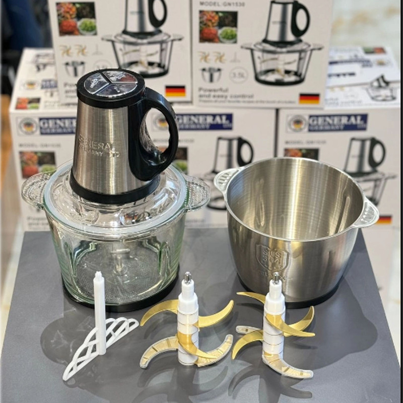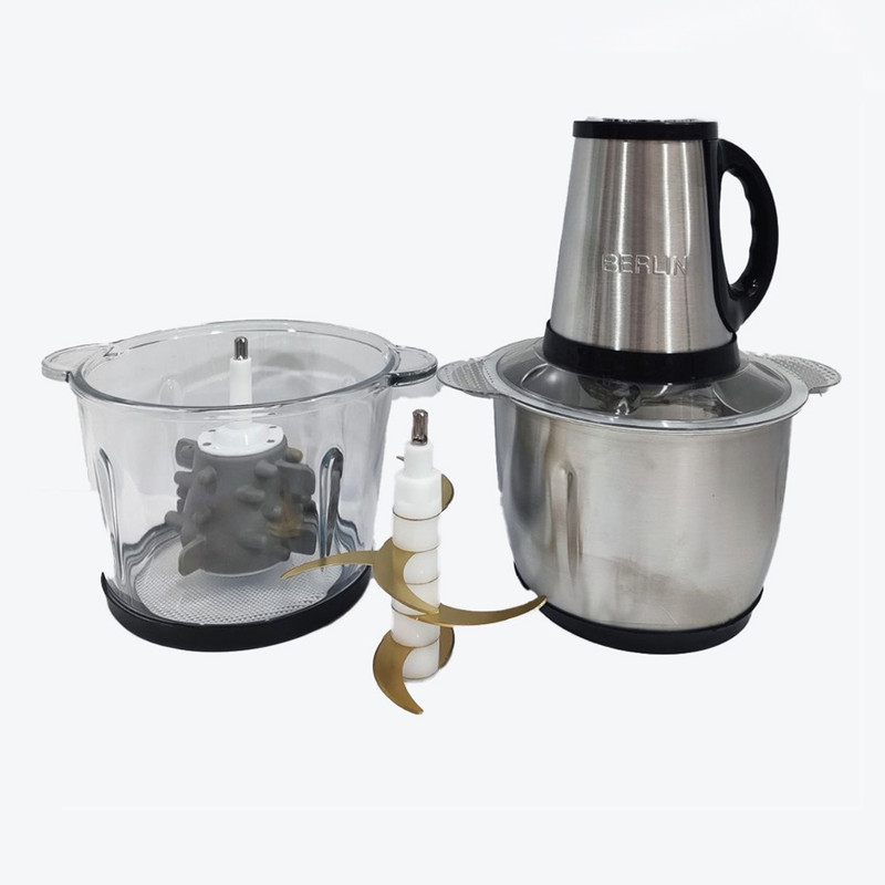 خردکن برلین 999 یک دستگاه چندکاره و پیشرفته است که طراحی و ساخت آن به گونه‌ای است که به راحتی می‌تواند نیازهای مختلف آشپزی را برآورده کند.این دستگاه دارای دو کاسه استیل ضد زنگ و همچنین پیرکس میباشد تیغه های این دستگاه تیتانیومی و بسیار با کیفیت با عمر طولانی می باشد این دستگاه دارای 6 عدد تیغه می باشد و همچنین یک عدد سیر پوست کن که به راحتی می توان از آن استفاده نمود در داخل پک قرار دارد این خردکن یکی از محبوب ترین ها و میکسرهای خانگی است. این دستگاه به دلیل طراحی کاربرپسند و عملکرد بالا، مورد توجه بسیاری از آشپزها و علاقه‌مندان به آشپزی قرار گرفته است داری ظرفیت 3.5 لیتر است که براحتی برای همه خانواده ها مناسب هستند این خردکن به ویژه برای افرادی که به دنبال صرفه‌جویی در زمان و تسهیل فرآیند آماده‌سازی غذا هستند، بسیار مناسب است.