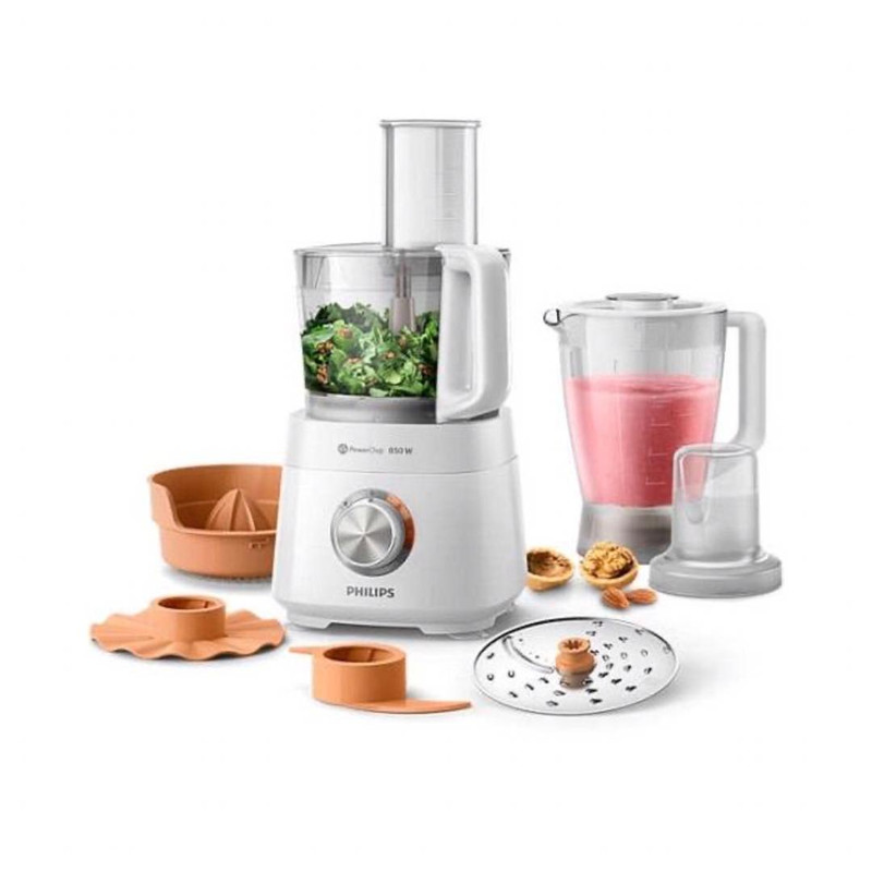 غذاساز فیلیپس برای افرادی که خواهان غذاهای خوشمزه و متنوع هستند! برای تهیه غذاهای خوشمزه و یک دست به یک غذاساز احتیاج هست تا به آسانی و در کمترین زمان یک غذای لذیذ برای خود و خانواده تان تهیه کنید. خانم های کد بانو با این وسیله می توانند به غذاهای خود نیز تنوع بدهند و یک آشپزی رنگارنگ و حتی سرگرم کننده داشته باشند. فیلیپس با ساخت لوازم خانگی از انواع مختلف، توانسته است مردم را همواره مجذوب خود کند. این بار برای خانم های خوش سلیقه غذاساز های گوناگونی را تولید کرده است که یکی از مدل های کارآمد آن مدل HR7510 است. غذاساز فیلیپس HR7510 با تسریع در آشپزی و به عنوان یک کمک آشپز نیز به شما کمک خواهد کرد. دستگاه غذاساز HR7510 با طراحی در رنگ مشکی توانسته است با اکثر وسایل داخل خانه ست شود. شرکت فیلیپس سعی کرده است با حداقل تلاش، حداکثر تنوع را فراهم کند. غذاساز 21 کاره فیلیپس مدل HR7510 با تکنولوژی پاور چاپ « PowerChop » نتایج عالی آشپزی را فراهم کرده است و با توان مصرفی 800 وات، تنظیمات 2 سرعته به همراه حالت پالس، دیسک استیل ضد زنگ و لوازم جانبی… در دسترس است. قطعات این غذاساز به راحتی وصل می شوند و هیچ وقت اضافی را از شما نمی گیرد؛ همچنین قابل شست و شو در ماشین ظرفشویی نیز هست. غذاساز فیلیپس HR7510 ابزارهایی همچون (خمیرزن،آب مرکبات گیر،پارچ مخلوط کن ) دارد. غذاساز مدل HR7510 از پایه های محکمی نیز برخوردار است.