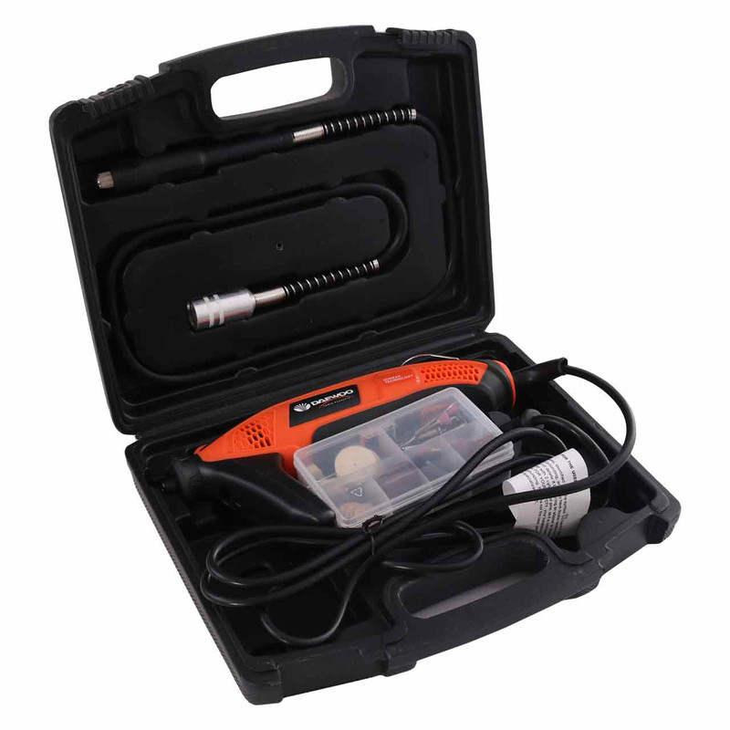 فرز برقی وسیلهای است که با چرخاندن دورانی سریع انواع دیسکهای برش، سایش و یا پولیش دهنده؛ جهت برش، سایش و یا پرداخت فلزات و یا سایر قطعات کاری استفاده میشود. فرزهای مینیاتوری عمدتا جهت کارهای ظریفتر فرزکاری و با دقت بالا از قبیل مجسمه سازی، تراشکاری و قالب گیری، ساخت کاردستی، ساخت و تولید لوازم دندانپزشکی و دندانسازی مورد استفاده قرار میگیرد. فرز مینیاتوری برقی دوو مدل DADG233 دارای مجموعه 87 عددی از متعلقات پرکاربرد از قبیل سنگ سنباده و برش، متههایی با قطر بسیار کم، صفحههای سنباده، دو نوع فرچه جهت حکاکی، طراحی، سوراخکاری و سنباده کاری است. همچنین 2 کولت برای کار در شرایط مختلف برای این محصول در نظر گرفته شده است. این مجموعه در داخل یک کیف BMC مقاوم جمعآوری شده است. بدنه این دستگاه خوشدست و ارگونومیک، همچنین دارای روکش نرم ضد لغزش و ضد تعریق جهت راحتی کاربر در استفاده طولانی مدت است. دسته جانبی این دستگاه دارای قابلیت نصب و جدا شدن آسان جهت راحتی استفاده بر روی قطعه کارهای متفاوت هست. قدرت موتور این کالا 170 وات است و سرعت گردش در حالت بی باری 10000-35000 دور در دقیقه هست.