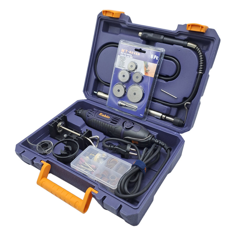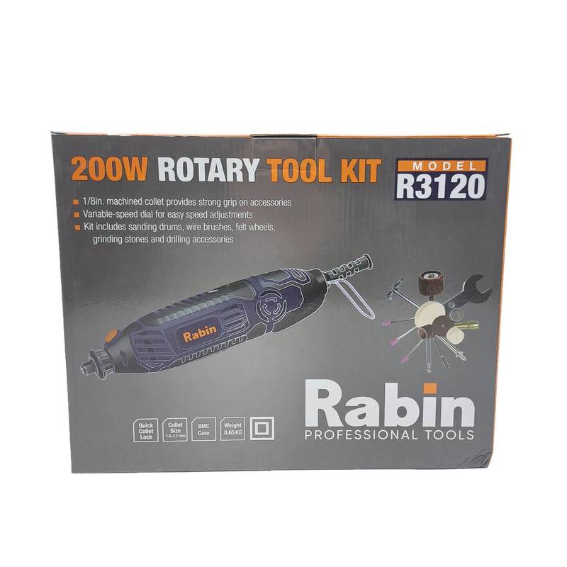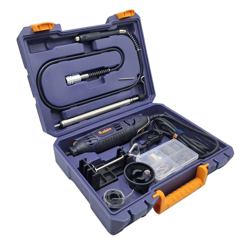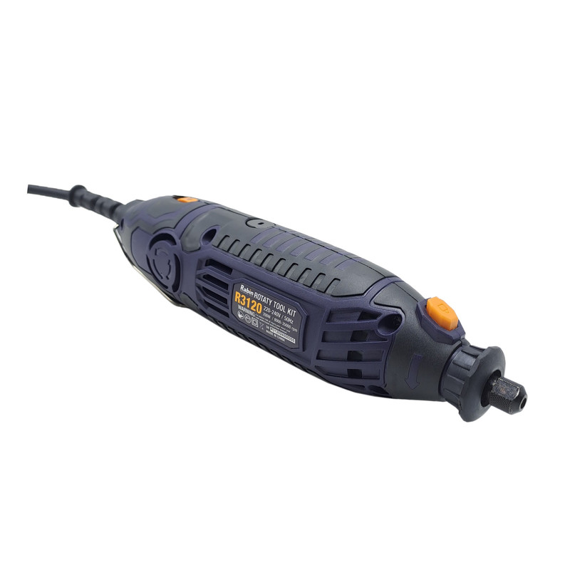 فرز انگشتی 200 پارچه رابین « R3120» یکی از مدلهای با کیفیت و کارآمد تولید شده توسط شرکت رابین است. این مدل بسیار با دوام و با کیفیت و البته خوش دست طراحی شده تا بتوانید از آن سالیان طولانی استفاده کنید. خوش دست بودن دستگاه فرز انگشتی رابین موجب شده تا در استفادههای طولانی مدت، اصلا احساس خستگی نکنید. فرز انگشتی رابین با قطعات مختلف و متنوعی همراه شدهاند که همگی بسیار منظم و مرتب در جعبه قرار میگیرند. پس از استفاده از فرز انگشتی میتوانید تمامی قطعات را در جعبه قرار دهید تا از گم شدن آنها جلوگیری شود. فرز رابین با موتور 200 واتی و قابلیت تنظیم سرعت تولید شده است. با وجود این موتور خوب و البته قطعات همراه فرز میتوانید انواع کارهای مختلف را با فرز انگشتی رابین انجام دهید. با استفاده از این فرز میتوانید کار فرز کاری، ساب زنی، حکاکی و … را بر روی متریالهای مختلفی از جمله سنگ، فلز، پلاستیک، چوب و … انجام دهید.