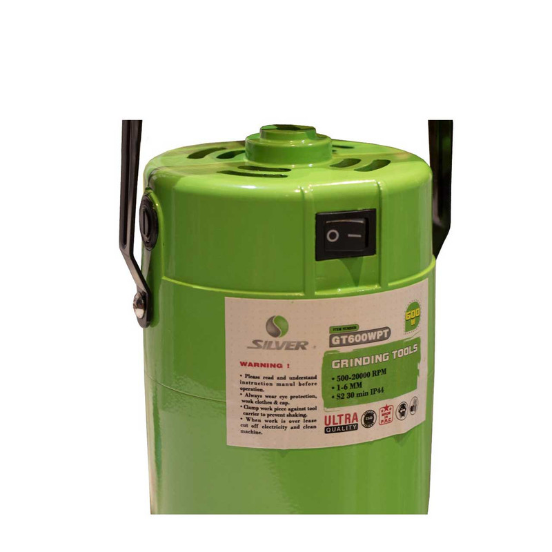 فرز انگشتی سیلور مدل GT-600W PT با کیفیت دارای کاربری بالا و قیمت مناسب جهت سوراخکاری ، صیقل و ساب با کاربرد به صورت عمومی ، حرفه ای و نجاری دارای کلید الکترونیکی ( دیمر ) کنترل سرعت به همراه شلنگ ، خرطومی و پایه نگه دارنده می باشد .