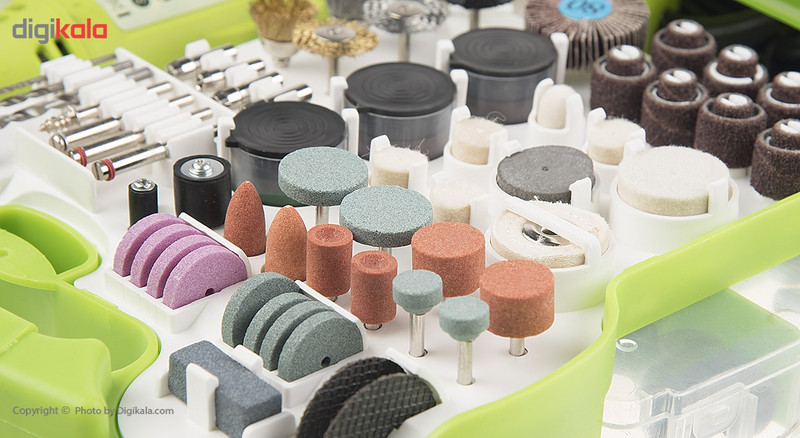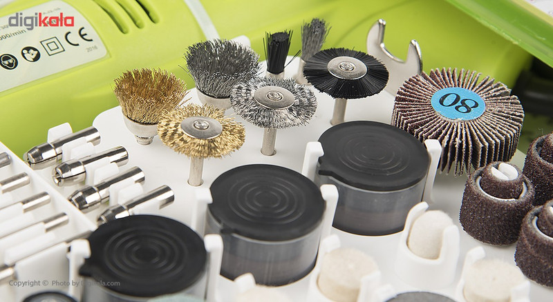 | سایر توضیحات | – ولتاژ: 230 ولت – فرکانس: 50/60 Hz – دارای 172 قلم ابزار مجزا جهت سوراخکاری، صیقل و ساب – ابعاد بستهبندی: 26.5 × 6 × 31.5 سانتیمتر |