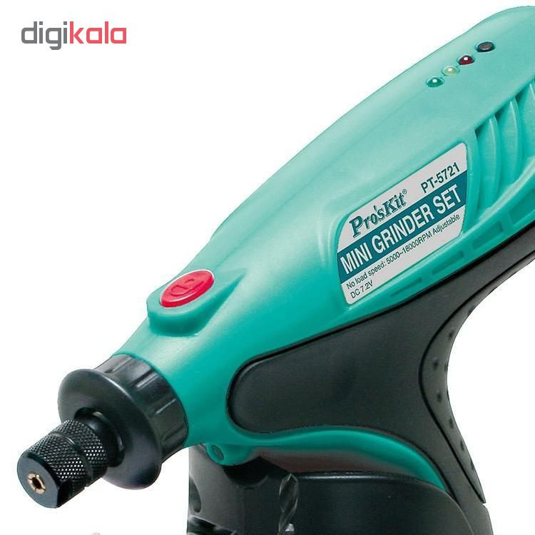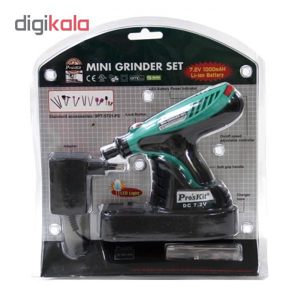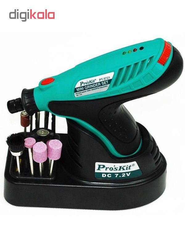 فرز انگشتی PT-5721F از شرکت پروسکیت میباشد. این فرز شارژی بوده و دارای باتری Li-ion با ولتاژ 7.2V و 1000mAH است و طی 3 تا 5 ساعت فول شارژ شده و با هر بار شارژ 60 دقیقه کار می کند. سرعت این فرز از 5000 تا 18000 دور در دقیقه قابل تنظیم است. این دستگاه دارای 16 مته و سنگ در اشکال مختلف میباشد و همچنین یک شارژر 9 ولت و پایه دستگاه داخل بسته بندی دستگاه وجود دارد.