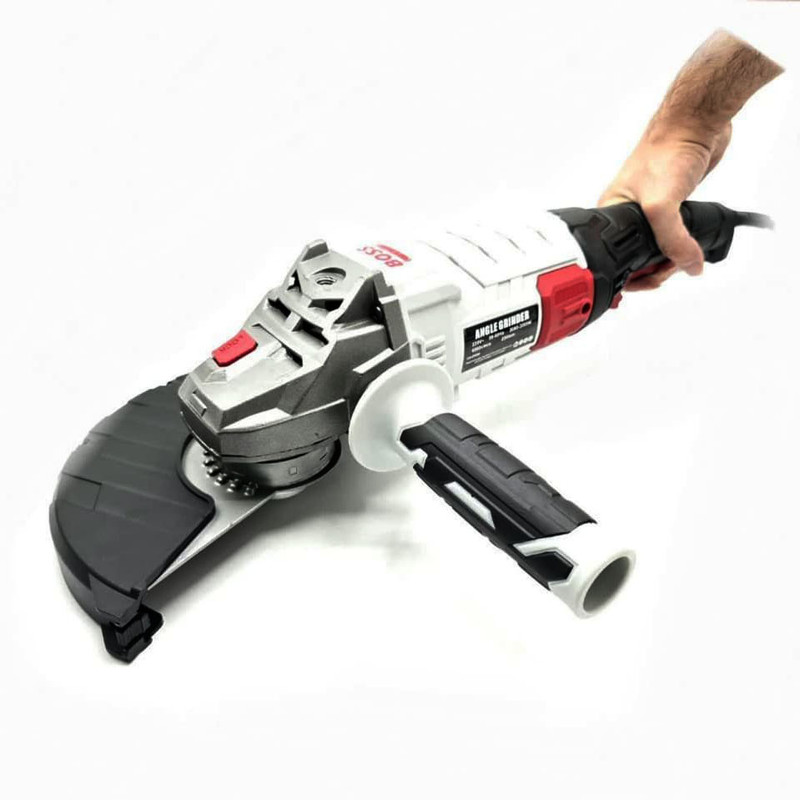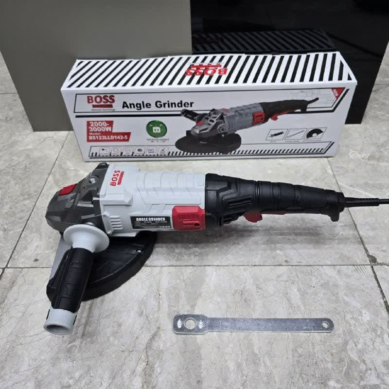 فرز سنگبری سوپر صنعتی باس یکی دیگر از محصولات شرکت معتبر BOSS می باشد که با موتور 3000 واتی قدرتمند خود، قادر است سرعت گردش آزادی برابر با 6500 دور در دقیقه برای انواع فعالیت های سنگبری و ساب زنی ایجاد کند. این فرز سنگبری صنعتی که به صورت اورجینال توسط ایران باس توزیع میگردد دارای قطر صفحهای برابر با 230 میلی متر است. از مشخصات خوب و لازم یک فرز سنگین، داشتن ایمنی بالاست. به این دلیل، این فرز باس، بر روی کلید پاور خود به یک ضامن مجهز است تا امنیت کار را بالا ببرد. برای نصب و تعویض آسان و سریع صفحه، این فرز مجهز به قفل کن شفت شده است که محور دستگاه را ثابت نگاه می دارد تا به فعالیت مورد نظر خود بپردازید. این دستگاه مجهز به یک دستهی جانبی لرزش گیر است که بنا به کاربری های مختلف و راست دست بودن و چپ دست بودن، می توانید آن را در سه سمت مختلف، یعنی در دو سوی دستگاه و بالای بدنه متصل کنید. روکش این دسته به صورت آجدار است تا از لرزش و عرق کردن این دسته در دست جلوگیری شود. نرمی این دسته هم راحتی خوبی دارد. این فرز سنگبری که بدنهای با عایق دوبل دارد.