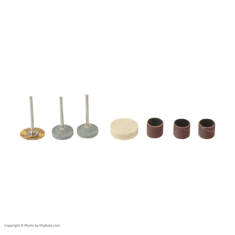 - اقلام همراه: – 3 عدد کولت – 231 عدد لوازم جانبی شامل: 5 سنگ فرز – 7 متهی الماسه – 12 سنباده استوانهای – 2 میلهی نگهدارندهی سنبادهی استوانهای – 36 صفحه برش دایرهای – 1 سنگ سنبادهی معمولی مکعب – 4 سنگ سنبادهی الماسه – 2 فرچهی مویی و سیمی – 1 سری کاتر – 3 مته – 1 آچار مخصوص – 2 میلهی نگهدارندهی سنگ برش و سنگ سنبادهی الماسه – 40 صفحهی دایرهای سنباده – میله اتصال سنباده – 2 سنگ برش فولاد – 1 شلنگ – پایه اتصال به میز – پایه اتصال به دستگاه – کیف پلاستیکی