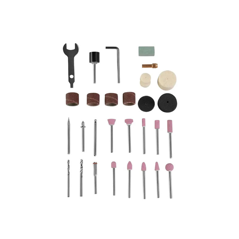فرز برقی مینیاتوری 3403 به همراه متعلقات کاملی از ابزار و تجهیزات کاربردی برای سنباده زنی، برش، کنده کاری، صیقل دادن و … بر روی سطوح چوبی ارائه می شود. این دستگاه مجهز به موتوری با توان 130 وات بوده که چرخشی بالغ بر 10000 تا 35000 دور در دقیقه فراهم می کند.