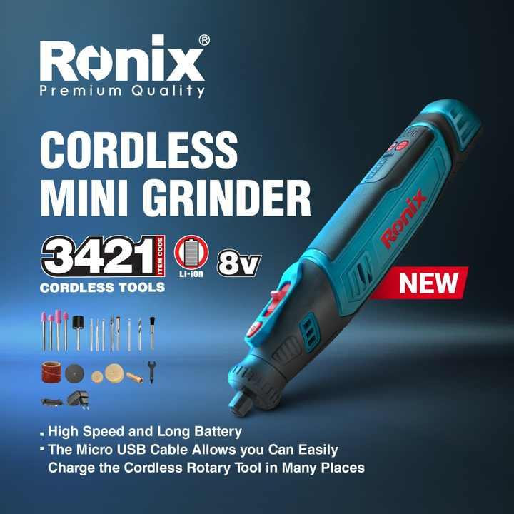 فرز مینیاتوری شارژی 3421 رونیکس مجهز به یک موتور DC 8 ولت است که سرعتی بالغ بر 30000 دور در دقیقه تولید کرده و به ابزارگیر 3.2 میلی ‌متری خود منتقل می ‌کند. سرعتی که در 5 حالت مختلف، در بازه 5000 تا 30000 دور در دقیقه و متناسب با سطح کار شما قابل تنظیم است.