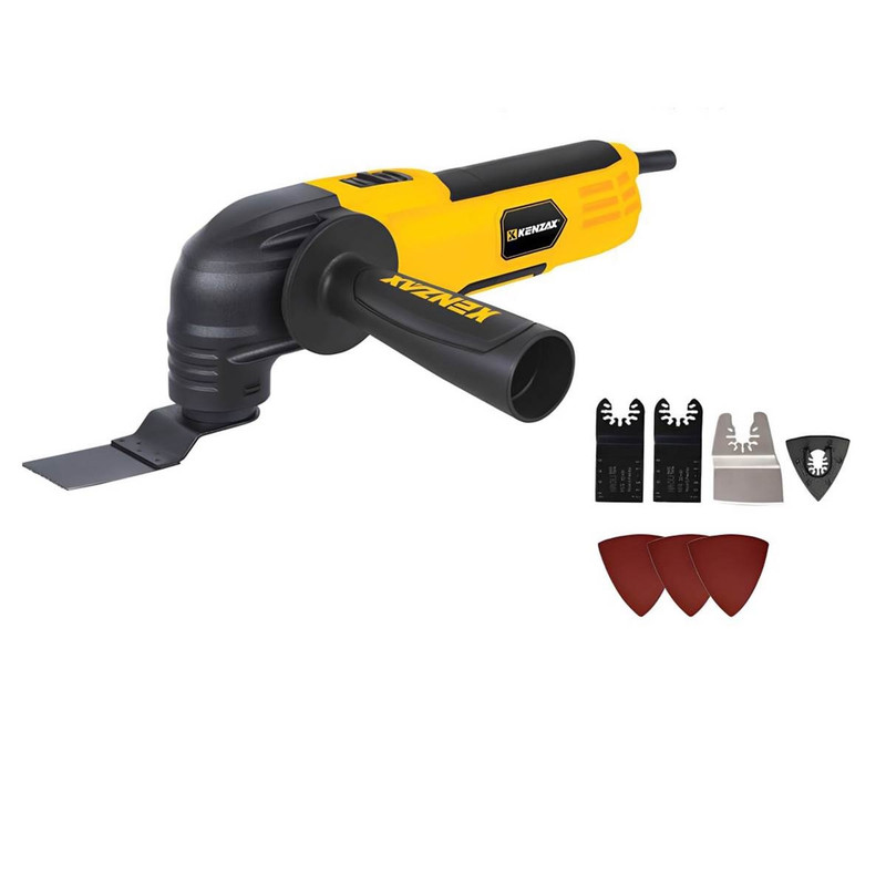 فرز همه کاره کنزاکس مدل 3593، با موتور قدرتمند 300 واتی دیمردار، توانایی ایجاد حداکثر 23 هزار نوسان در دقیقه را دارد و قادر به انجام سریع کلیهی عملیات رنگ بری، سنباده زنی و بریدن است. این محصول مجهز به دیمر تنظیم سرعت است که امکان تنظیم سرعت نوسان از 15000 تا 23000 بر دقیقه در 6 حالت را به کاربر میدهد. طراحی خاص و کارآمد این ابزار با ایجاد زاویه نوسان 3 درجهای علاوه بر برشهای دقیق و سریع میزان لرزش دستگاه را به حداقل میرساند.