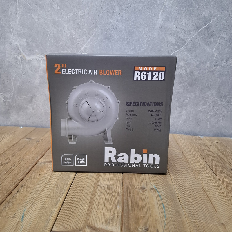دم برقی 2 اینچ رابین مدل 150W ، یک دستگاه دمنده برقی، با موتور 150 واتی است که با طراحی ویژه بدنه و پایههای محکم و مقاوم و با قابلیت پیچ شدن بر روی میز کار، امکان استفاده به شکل ثابت و آسان را به کاربران میدهد. دم برقی 2 رابین ، از بدنهای با جنس آلومینیوم تولید شده و مجهز به پروانهی تمام فلزی و یک کویل صد در صد مسی است؛ همچنین دارای دریچهی قابل تنظیم هوای ورودی است. این دستگاه دمنده برقی رابین که دارای سایز مناسب 20×21×23 سانتیمتری و وزن 1.684 گرمی است، با سرعت گردش در حالت 3000 دور در دقیقه و قابلیت تولید باد، یکی از پرکاربردترین ابزارآلات برقی تولید شده توسط شرکت رابین در چین است. این دستگاه در هنگام کار صدایی با شدت 62 دسیبل تولید مینماید.