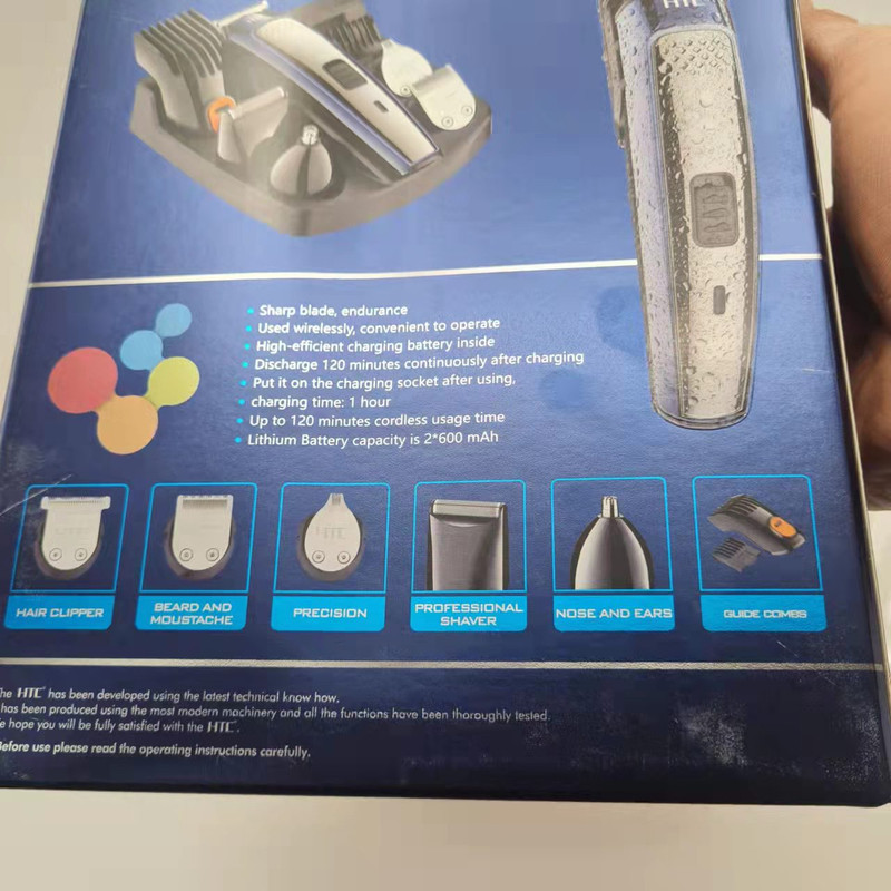 همیشه استفاده از یک ماشین اصلاح خوب و کارآمد یکی از دغدغه های استفاده کنندگان این وسیله بوده. محصولی که پیش روی شماست ، تولید یکی از حرفه ای ترین برند های مطرح این عرصه می باشد. برند شینون در آخرین تولید خود ، محصولی را معرفی کرده است که از جمله محصولات حرفه ای در زمینه اصلاح موی صورت و بدن می باشد. برخوردار بودن این ماشین اصلاح از امکانات جانبی مانند سری های قابل تعویض با شماره های مختلف و شانه های با شماره بندی متنوع و … یکی از مزیت های مهم آن است. مزیت دیگر ماشین اصلاح HTC مدل AT-1207B برخوردار بودن از باطری داخلی لیتیومی است که کارایی آن را بسیار افزایش می دهد و استفاده از آن را در هر شرایطی آسان می سازد. سری های مختلف تعبیه شده در ماشین اصلاح HTC امکان اصلاح مو بصورت برش مستقیم را دارد که به کوتاه و مرتب کردن موهای صورت و سر با مرزبندی مشخص کمک می کند. و در کارهای حرفه ای مانند سایه زنی به شما کمک می‌کند‏.‏ تیغه های استیل ضد زنگ قرار گرفته در پک این ماشین اصلاح کیفیت این محصول را دوچندان می کند. داخل بسته بندی این محصول علاوه بر ماشین اصلاح ، مجموعا 5 سری استیل مختلف ، شانه سایز بندی با شماره های متنوع ، شارژر ، روغن ، پایه ماشین اصلاح ، موپران ، یک عدد شانه دو طرفه ، و دفترچه راهنمای محصول قرار گرفته است که این مجموعه را به یک ابزار حرفه ای اصلاح تبدیل کرده است. همچنین پایه ای برای قرارگرفتن ماشین به همراه سری های مختلف تعبیه شده است که به آسانی روی میز قرار میگیرد و میتوانید در حین شارژ شدن ، آن را روی این پایه قرار دهید
