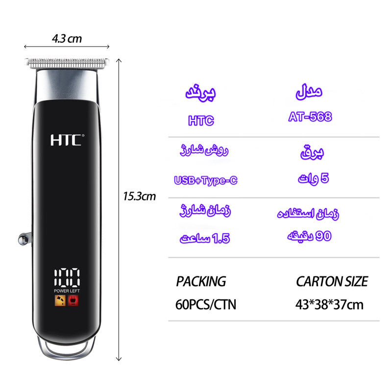 HTC AT-568 به موتوری قدرتمند و کمصدا مجهز شده است که عملکرد روانی دارد و در عین حال صدای کمی تولید میکند، بنابراین هنگام اصلاح باعث ایجاد مزاحمت برای دیگران نمیشود. بدنه این دستگاه از مواد مقاوم و باکیفیت ساخته شده که در برابر ضربه و خطوخش استحکام خوبی دارد و ظاهر آن نیز مدرن و شیک طراحی شده است. با وجود تمامی این ویژگیها، این ماشین اصلاح گزینهای مناسب برای استفاده شخصی و حتی حرفهای در آرایشگاهها محسوب میشود و با امکاناتی که ارائه میدهد، تجربهای راحت، سریع و دقیق را در اصلاح مو و ریش فراهم میکند.