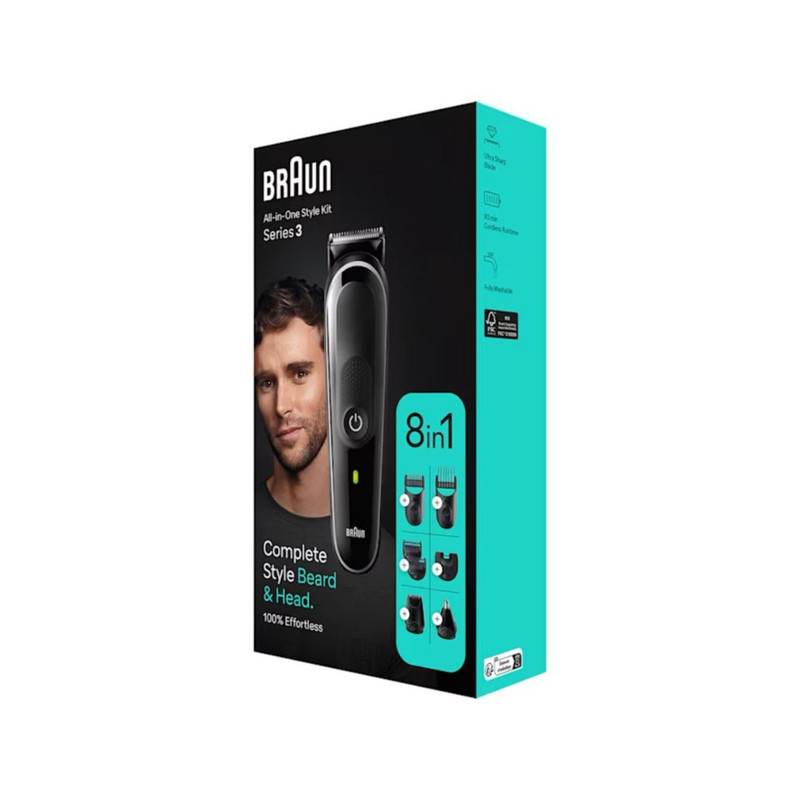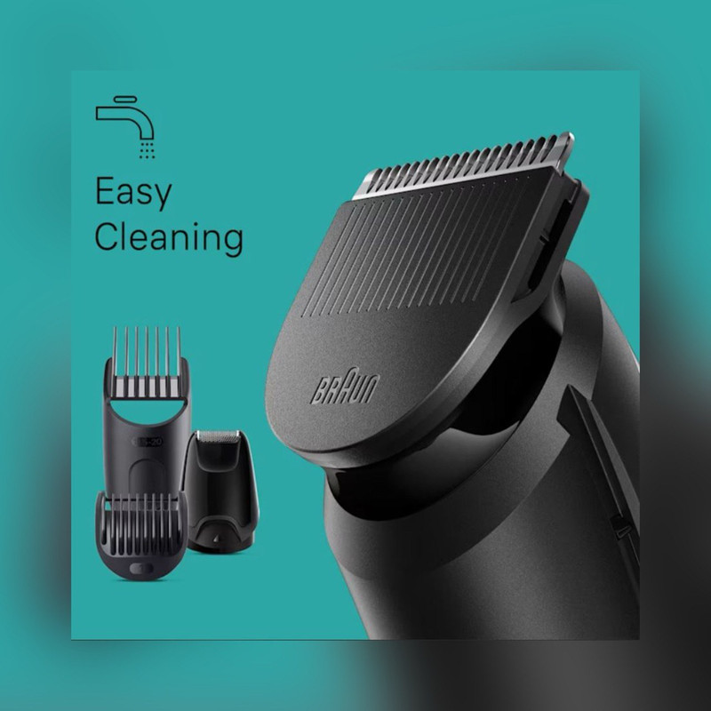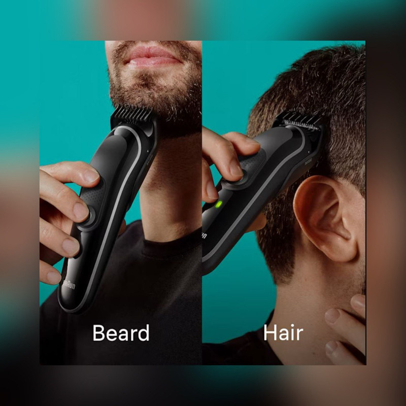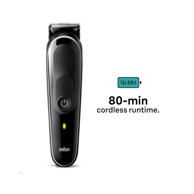 ماشین اصلاح براون مدل mgk3440 یک ست کامل برای اصلاح موی سر،صورت،بینی و گوش می باشد که کاملا ضد آب است و امکان اصلاح حتی در حمام را برای شما فراهم می کند و شستشوی دستگاه را بسیار آسان نموده است(easy clean).با یک مرتبه شارژ کامل دستگاه می توانید 80 دقیقه از آن استفاده کنید.اصلاح موهای ضخیم همیشه سخت بوده اما با استفاده از تیغه های فولادی ضد زنگ در این مدل و فناوری ultra sharp blade که باعث می شود به راحتی موهای ضخیم را اصلاح کنید.یک نشانگر LED برای نمایش وضعیت شارژ و اتمام باطری روی دستگاه قرار گرفته است.اقلام همراه دستگاه شامل یک عدد شانه اصلاح برای 3 تا 11 میلی متر،یک عدد شانه اصلاح برای 13 تا 21 میلی متر،یک عدد سری فویلی برای جزئیات اصلاح ،یک شانه مخصوص اصلاح شماره 1،یک شانه مخصوص اصلاح شماره 2،یک سری مخصوص اصلاح مناطق حساس،برس تمیز کننده،کیف نگه دارنده و شارژر می باشد.