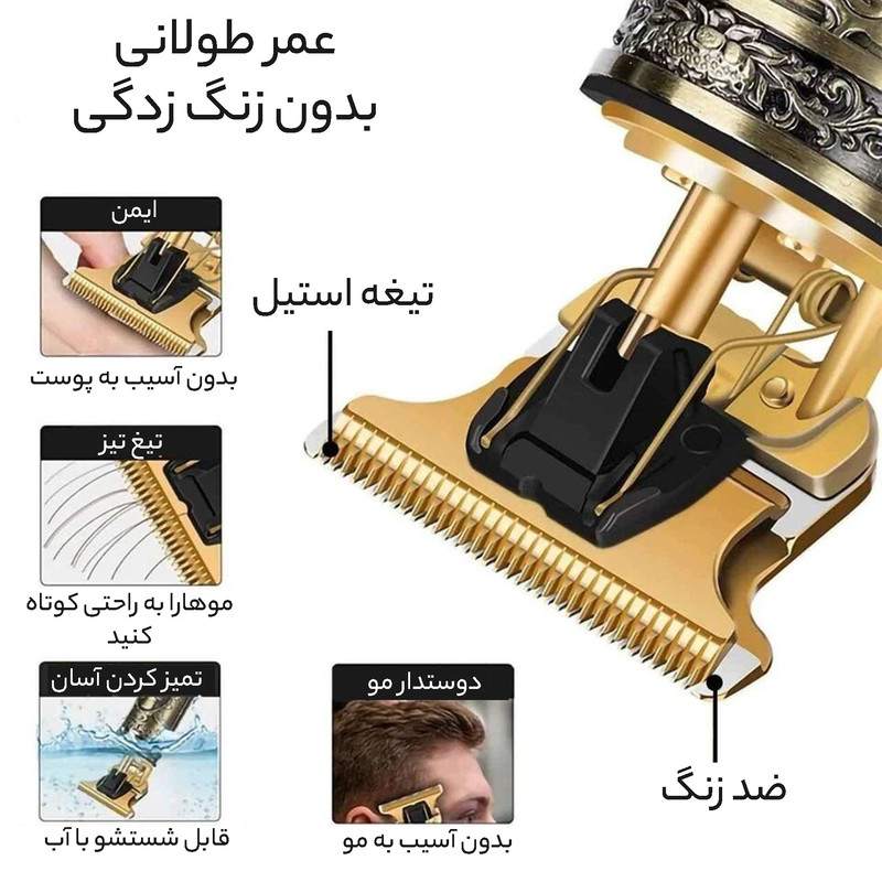 ماشین اصلاح سر و صورت سوکانی ،دارای4 سری و شانه تمیز کننده ،روغن و کابل usb تایپ cاست . همچنان طراحی ارگونومیک و داشتن صفحه نمایش این محصول را متمایز از سایر برند ها کرده است.