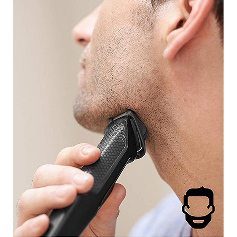 ماشین اصلاح موی سر و صورت فیلیپس سری MG3720 Multigroom مدل 7 در 1، دارای 7 ابزار در یک بسته بندی با قیمتی مناسب جهت استفاده روزمره است که با داشتن موزن گوش و بینی علاوه برابزار اصلاح موی سر و صورت دست شما را در اصلاح روزانه کاملا باز گذاشته است. با داشتن زمان شارژدهی مناسب 60 دقیقه در هر بار شارژ کامل استفاده از آن را در طول سفر امکان پذیر میسازد. دارای سریهای تریمر(1عدد)، سری موزن گوش و بینی (1عدد) ، شانه اصلاح (5عدد) و کیف مخص.ص نگهداری است. طراحی ارگونومیک و وزن مناسب از دیگر ویژگیهایی است که کمک میکند تا تجربه راحتتری از اصلاح داشته باشید. 2 شانه ریش، 2 شانه ته ریش، شانه مو، موبر، شارژر و کیف از لوازم جانبی همراه این محصول است. در نهایت، استفاده از ماشین اصلاح موی سر و صورت فیلیپس سری MG3720 Multigroom، به شما امکان میدهد تا به آسانی و با دقت بالا موهای صورت و بدن خود را اصلاح کنید و ظاهری مرتب و خوشنما داشته باشید. با داشتن این محصول، شما میتوانید به سرعت و با استایل، ظاهری دقیق و بهروز داشته باشید و همواره شیک و آراسته به نظر برسید.
