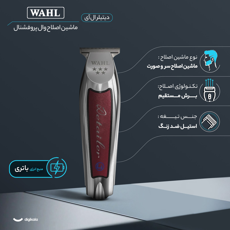 ماشین اصلاح خط زن شارژی وال دیتیلر لی Wahl Detailer Li 5-Star Cord/Cordless Trimmer ماشین اصلاحی خط زن است و عملکردی سریع و قوی دارد که بسیار استفاده از آن را آسان میکند.