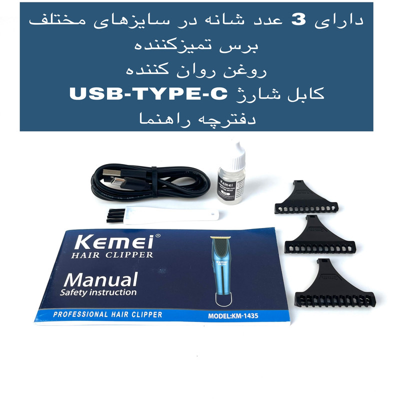 | سایر مشخصات | دارای درپوش تیغه-حلقه آویز-3 عدد شانه در سایزهای مختلف-برس تمیز کننده-روغن-چراغ نشانگر شارژ- |