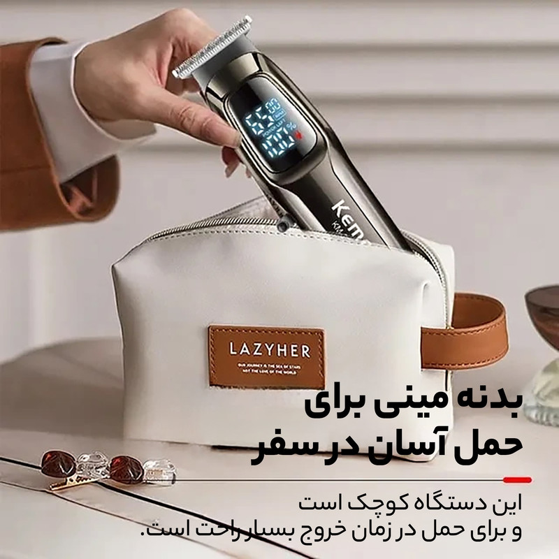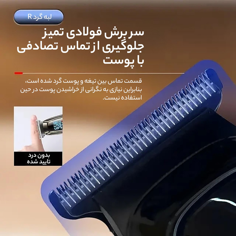 شامل چهار عدد شانه یک میلی متر تا چهار میلی متر است. یک عدد کابل شارژ و یک عدد برس تمیز کننده و روغن مخصوص ماشین اصلاح همراه دارد. بدنه پلاستیک جنس abs میباشد.