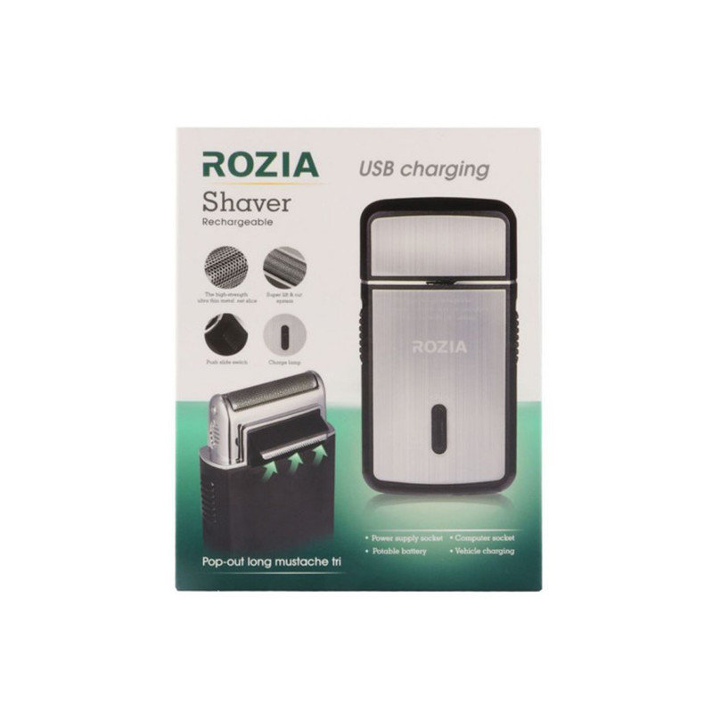 این محصول ساخته شرکت روزیا می باشد . شیور صورت روزیا دارای کابل USB یک عدد تیغه و برس تمیز کننده می باشد مدت زمان شارژ نیازمند 8ساعت شارژ مداوم است قدرت موتور این محصول 5 وات است