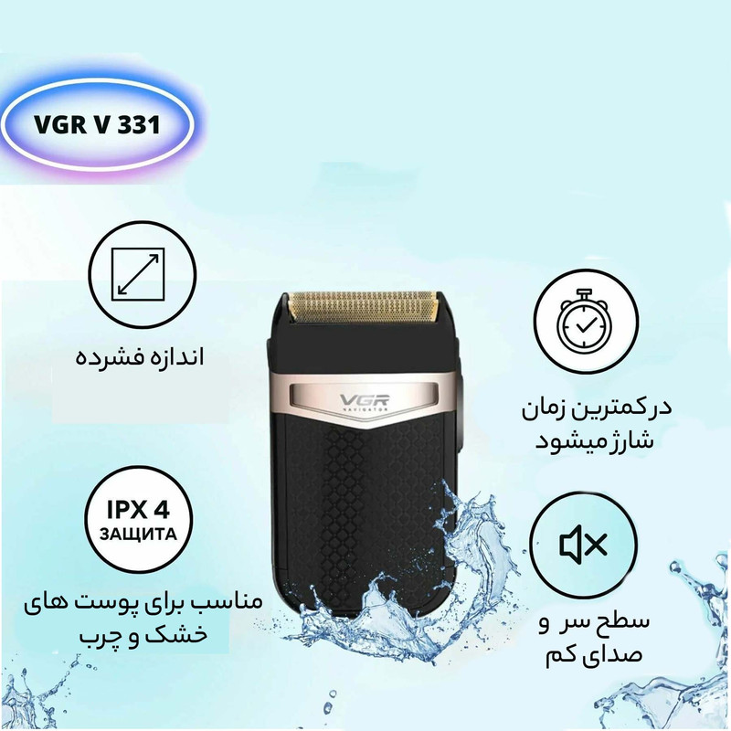 ماشین اصلاح صورت مدل 331 کاملا ضد آب میباشد و دولبه میباشد و به راحتی بعد از اصلاح می توان زیر شیر آب تمیز کرد سری این دستگاه دولبه میباشد که باعث میشود زمان اصلاح کمتر شود و همچنین این دستگاه نیز سری یدک دارد .