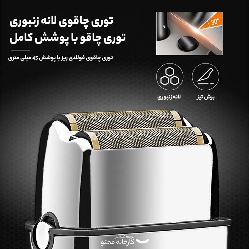 تیغه آن با طراحی منحصر به فرد لانه زنبوری اش، به راحتی روی سر، صورت و گردن شما تنظیم شده و اصلاحی تیز و سریع بدون آسیب رساندن به پوست دارد.