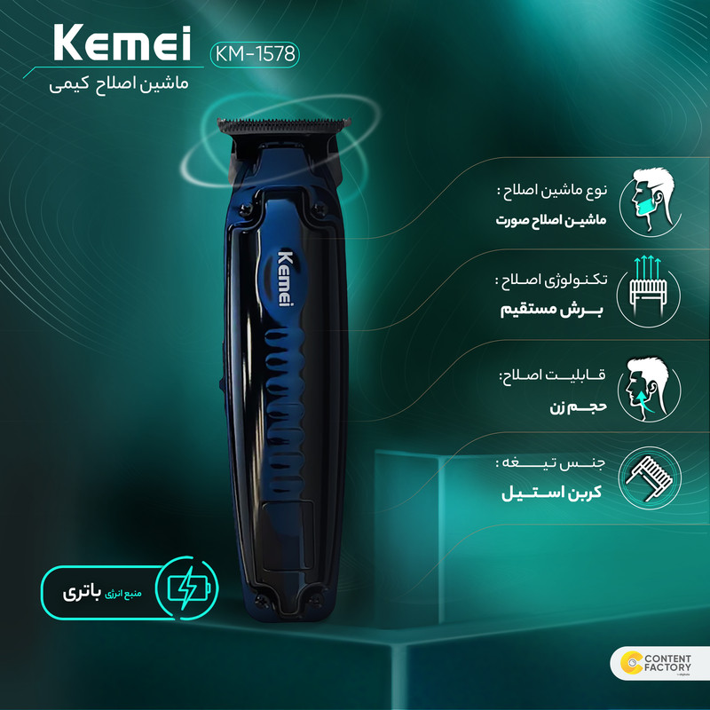 ماشین اصلاح موی صورت کیمی مدل KM-1578 یک انتخاب مناسب برای کسانی است که به دنبال یک دستگاه حرفه ای و کارآمد برای اصلاح موی صورت خود هستند. این ماشین اصلاح با قیمت مناسب و کیفیت بالا، میتواند شما را راضی کند.