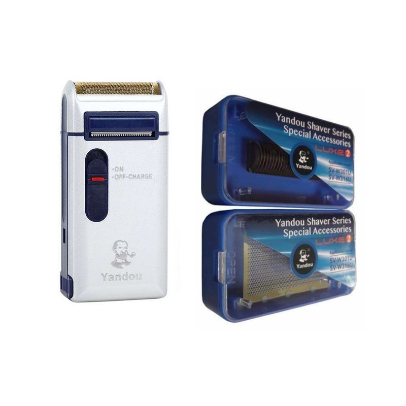 ریش تراش Yandou مدل sv-w301u، وسیله کاربردی جهت اصلاح آقایان است، شما می توانید از ریش تراش یاندو به عنوان هدیه ای ویژه و خاص مخصوص آقایان استفاده نمایید، دارای باتری قوی و قابل شارژ است که با هر بار شارژ می توانید به مدت 8 تا 16 ساعت از ریش تراش یاندو استفاده نمایید، ریش تراش مورد نظر دارای تیغ اصلاح است، از ویژگی های منحصر به فرد ریش تراش قابلیت شست و شوی آن می باشد. به همراه این ریش تراش یک عدد تیغه ی یدک اصلی و یک عدد توری همراه با کارتن مادر این محصول ارائه می شود که میتوانید جهت جلوگیری از کند شدن تیغ ها و توری آن را به صورت متقابل به راحتی تعویض کنید.