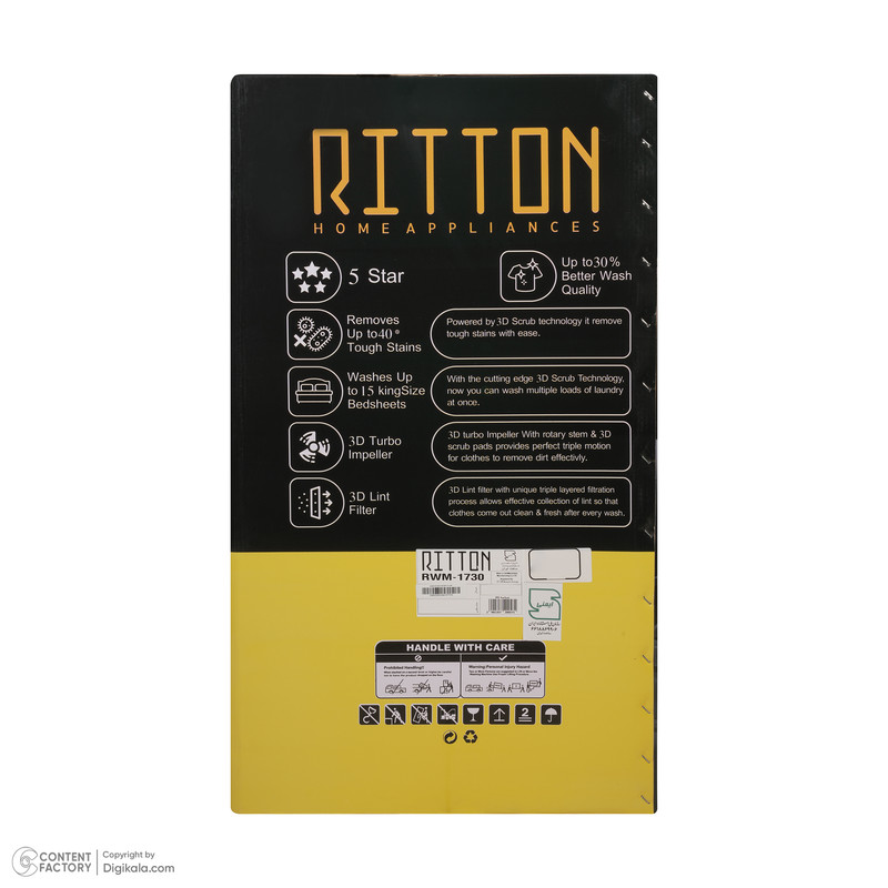 نوع کنترل دستگاه چرخشی است، بنابراین استفاده از آن بدون پیچیدگی و برای همه افراد قابلدرک خواهد بود. عدم وجود نمایشگر وضعیت در این مدل، طراحی ساده و کاربردی آن را نشان میدهد که بیشتر بر عملکرد قوی و دوام بالا متمرکز شده است. مجموع این ویژگیها ریتون RWM‑1730 ACE PRO 2XL را به انتخابی مناسب برای شستوشوی حجیم و روزمره تبدیل میکند.