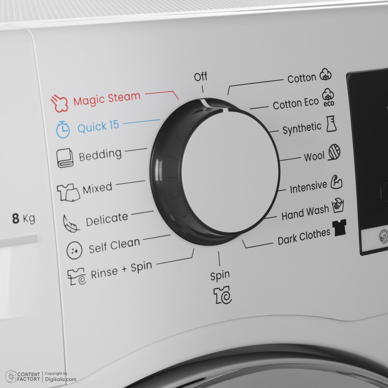 این مدل دارای ۱۵ برنامه اصلی شستوشو شامل شستوشوی سریع Quick Wash، Drum Clean و لباس کودک است. بیشترین دمای قابل تنظیم ۹۰ درجه و کمترین دما ۲۰ درجه سانتیگراد است. زمان شستوشو بین ۱۵ دقیقه تا ۳ ساعت متغیر بوده و بر اساس نوع پارچه و سطح آلودگی تنظیم میشود. فناوری بخارشوی، رفع چروک و از بین بردن بوهای سطحی را انجام میدهد و سامانه پخش یکنواخت البسه در درام، توزیع بهتر مواد شوینده را تضمین میکند. وجود قفل کودک و سامانه عیبیابی خودکار ایمنی و اطمینان بیشتری به کاربر میدهد.