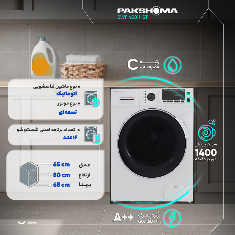 ماشین لباسشویی 8 کیلوگرم اتوماتیک پاکشوما مدل BWF 40811 iST