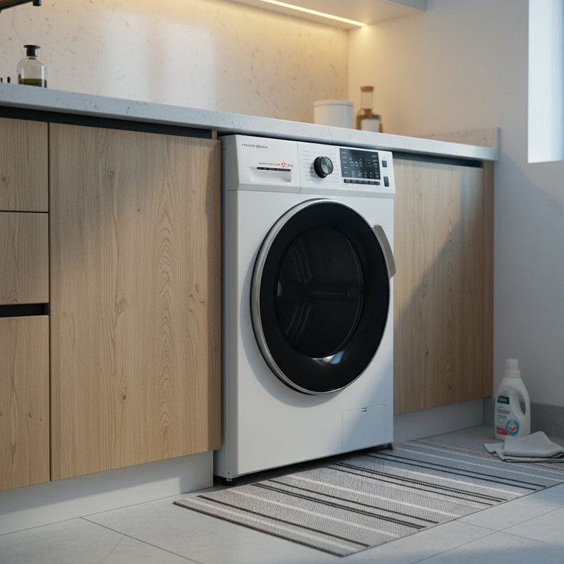 این ماشین لباسشویی با ابعاد استاندارد ۸۰×۶۵×۶۵ سانتی‌متر، به‌راحتی در آشپزخانه‌های کوچک جای می‌گیرد.